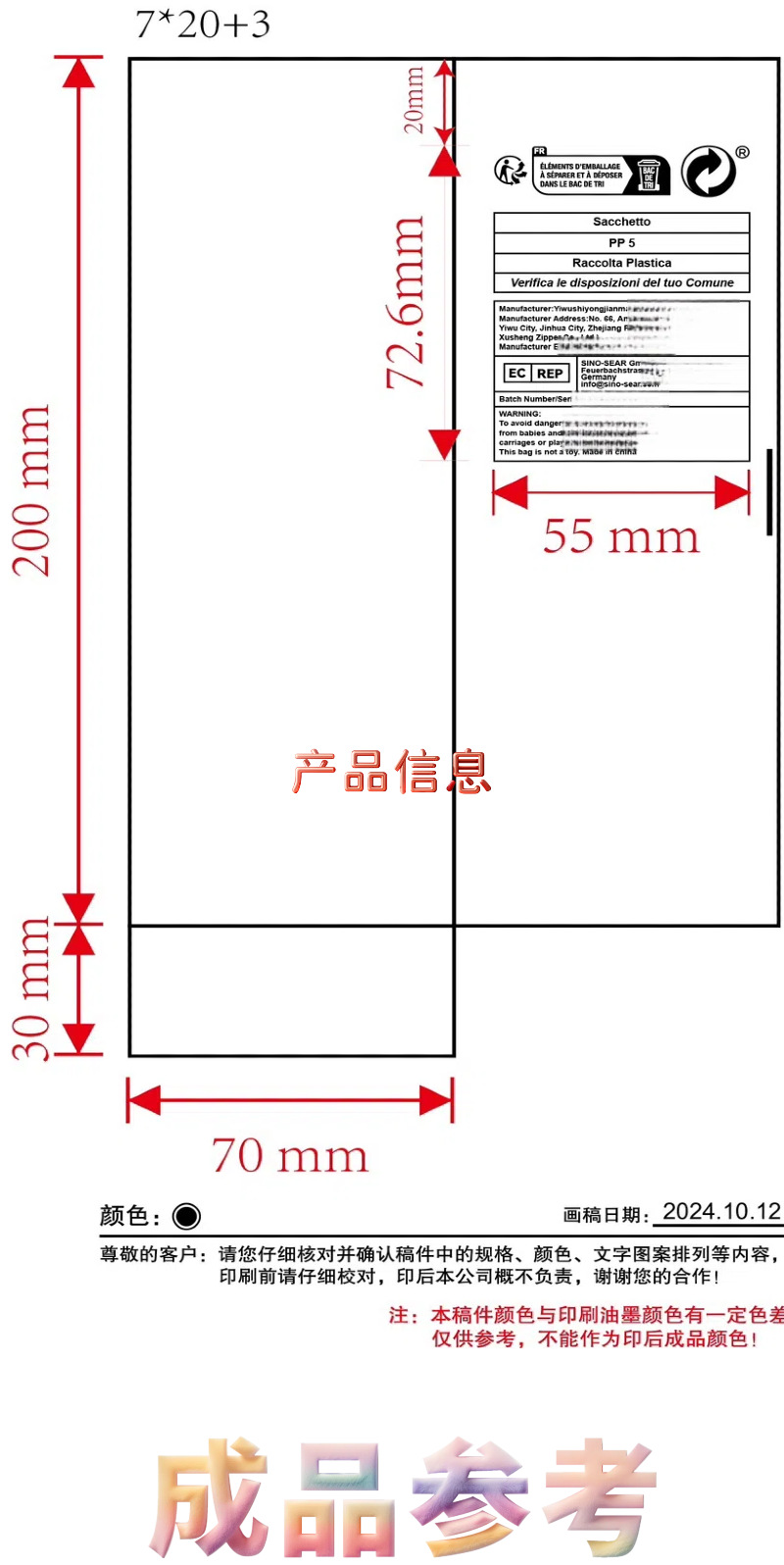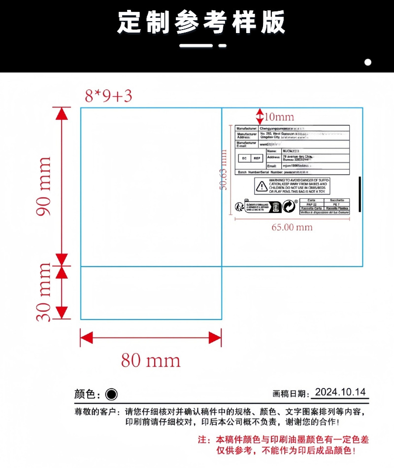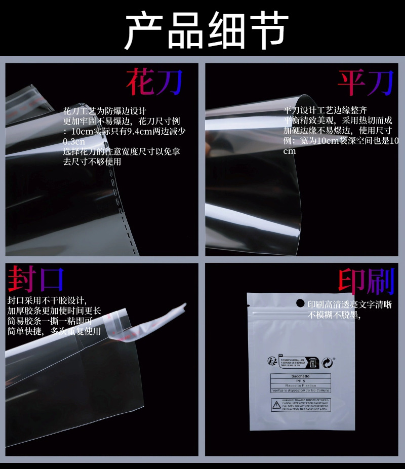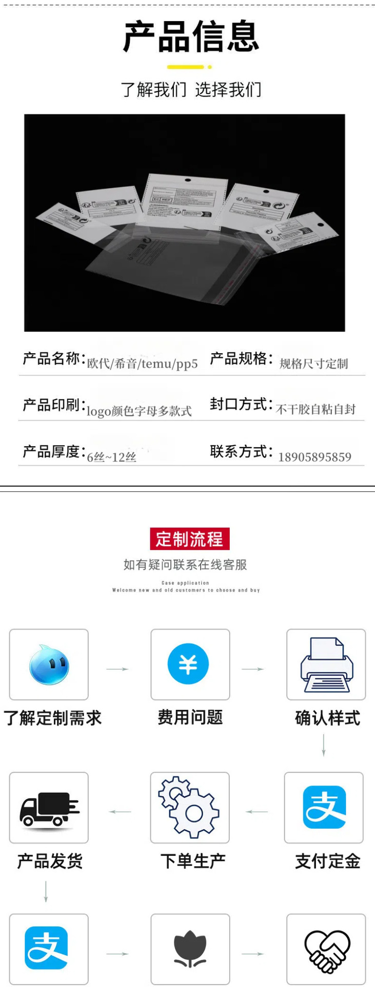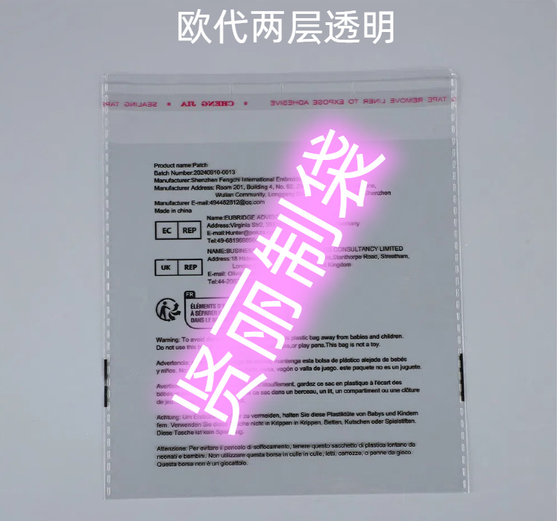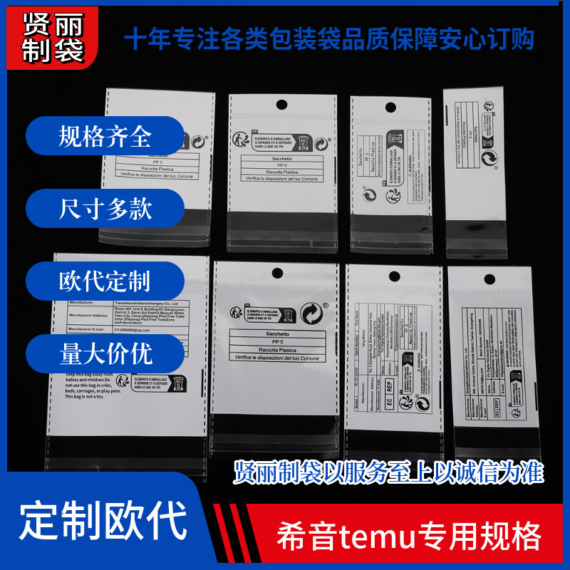 오다이시인 테무 접착식 가방 PP5 표준 친환경 표지 경고 문구 삼중 진주광택 이중 투명 포장 가방