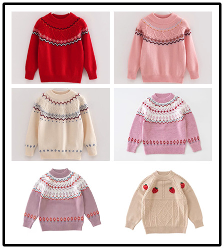 10 공장 용품 레트로 소녀 캐시미어 스웨터 겨울 만화 크루 넥 니트 베이스 베이비 스웨터 두껍게