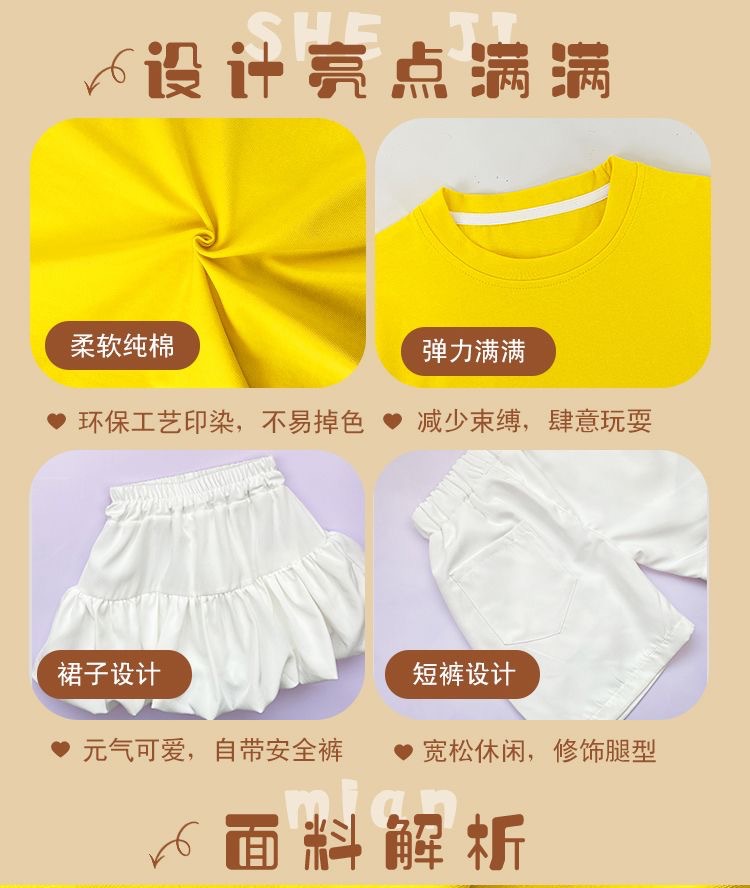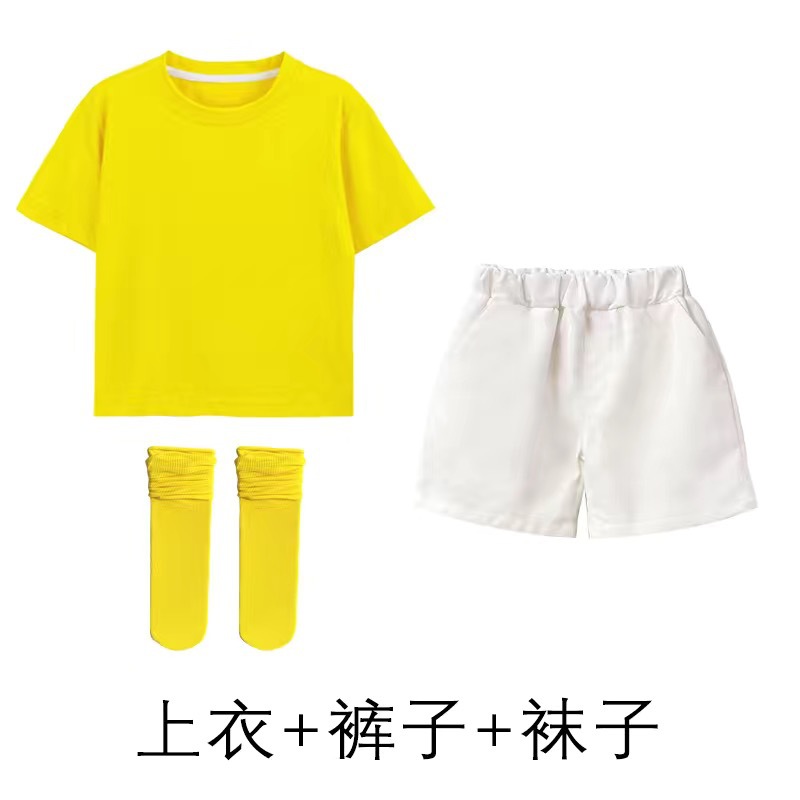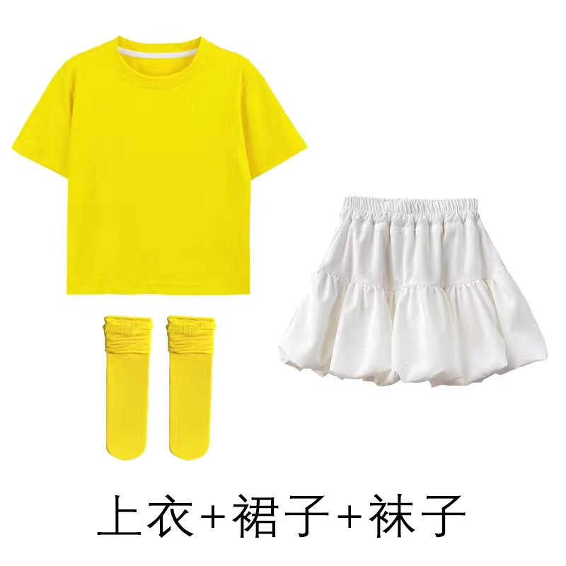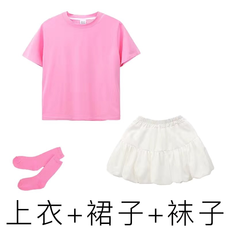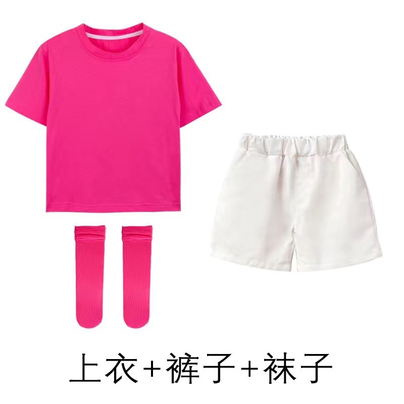 도매 단색 반팔 반바지 정장 짧은 치마 소녀 편안한 어린이 날 공연 의류 학생 도파민 아동 의류
