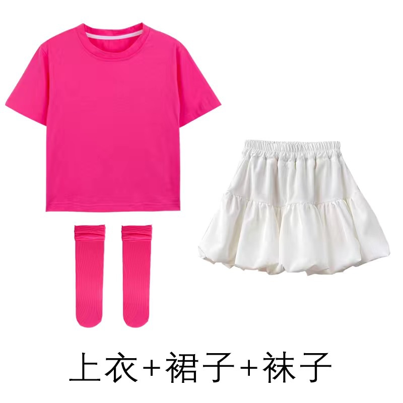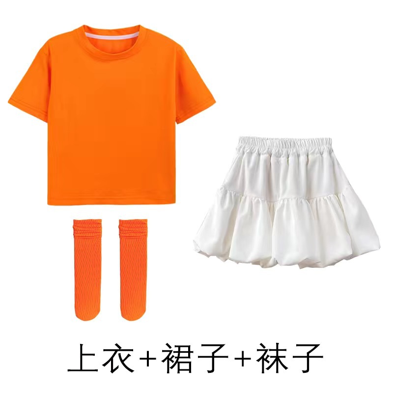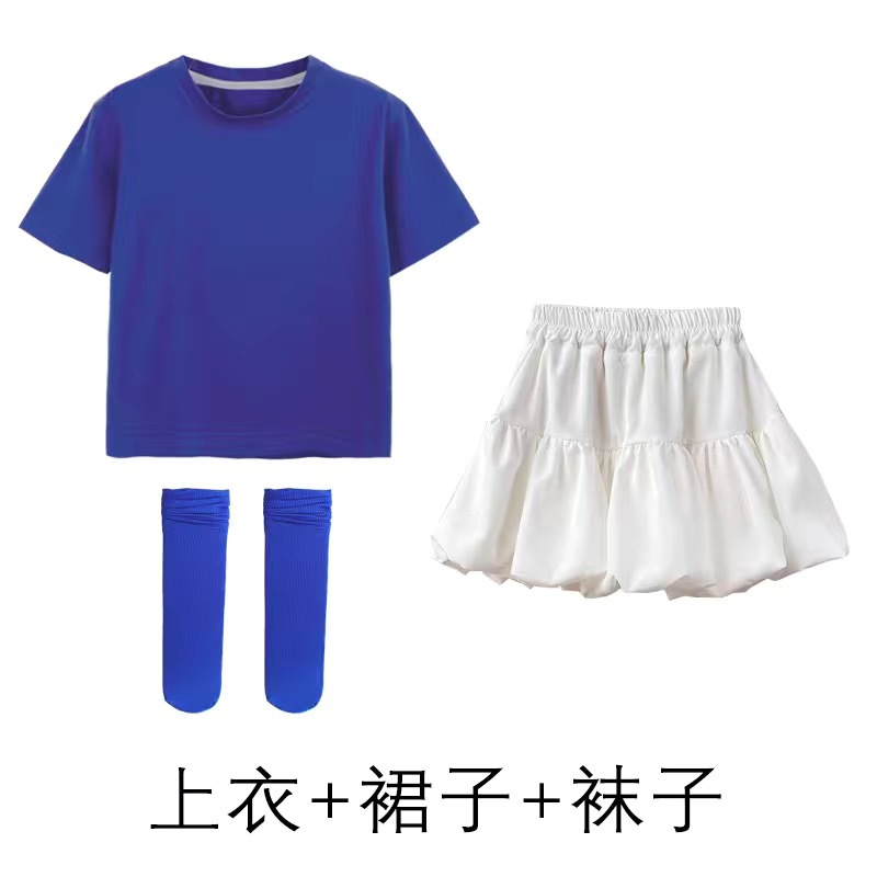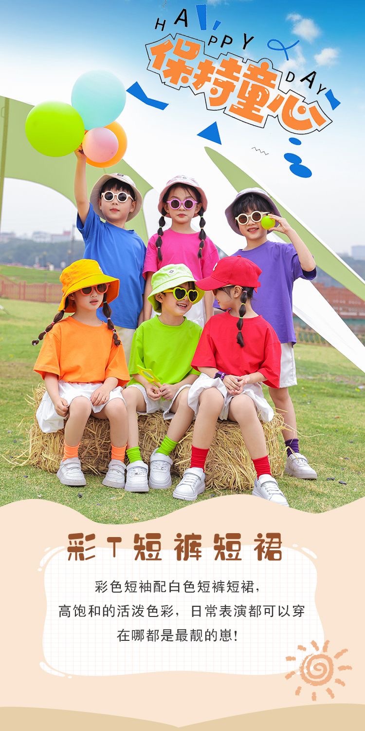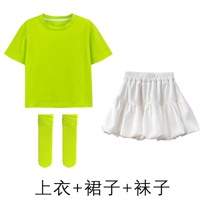 도매 단색 반팔 반바지 정장 짧은 치마 소녀 편안한 어린이 날 공연 의류 학생 도파민 아동 의류