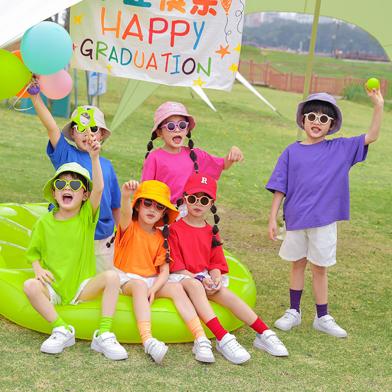 도매 단색 반팔 반바지 정장 짧은 치마 소녀 편안한 어린이 날 공연 의류 학생 도파민 아동 의류스토어 가기