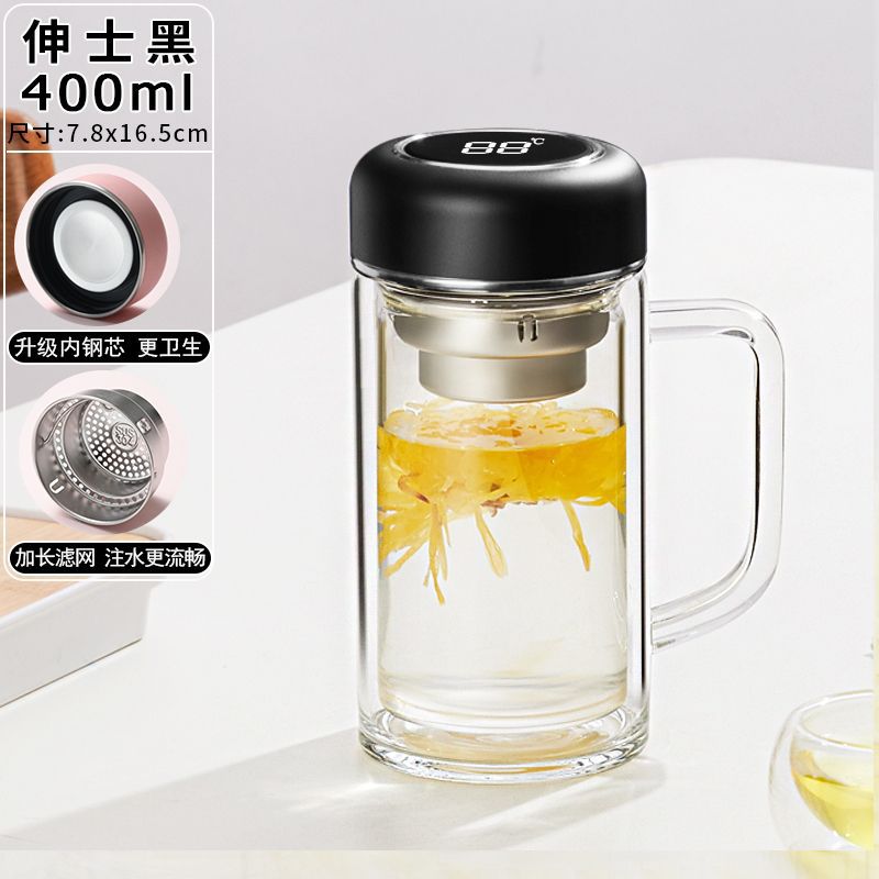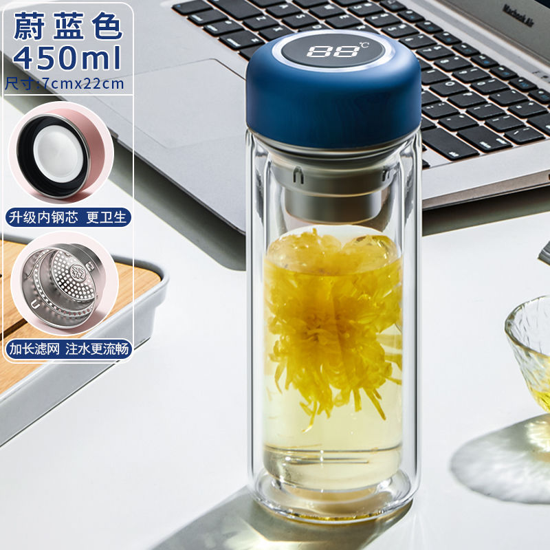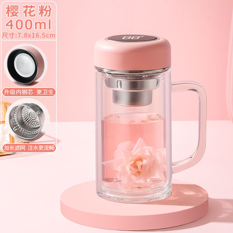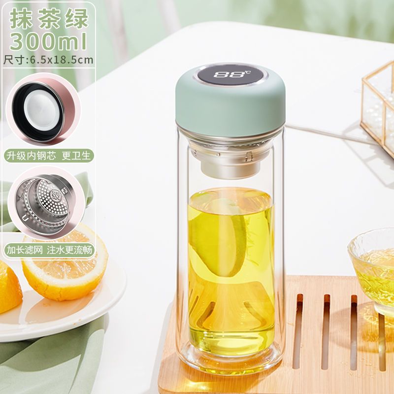 온도 디스플레이 더블 레이어 유리 여성용 귀여운 학생 거품 꽃 티 컵 절연 휴대용 마시는 컵 Hongzhi로 두껍게스토어 가기