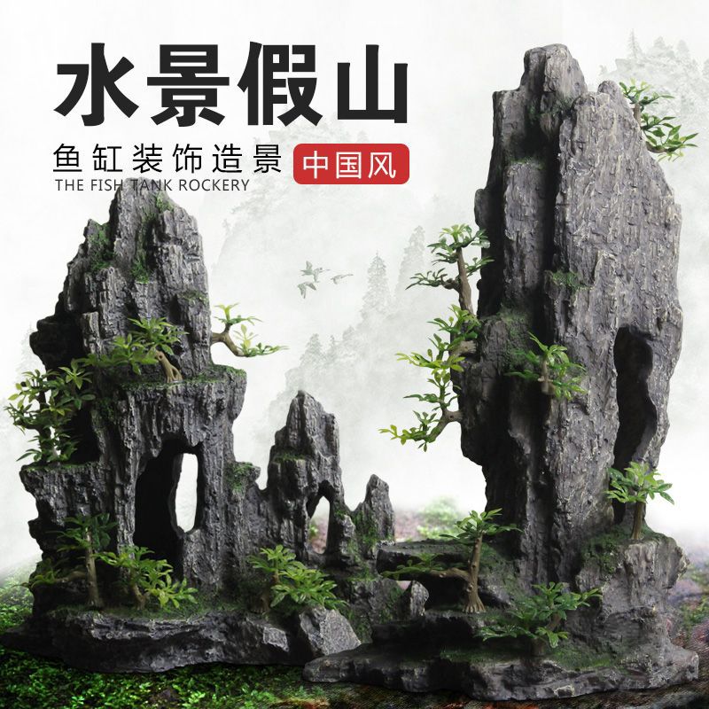 물고기 탱크 장식 수족관 거북이 탱크 풍경 돌 가짜 산 물 잔디 탱크 창조적 인 패키지 큰 돌 장식품 Weidong