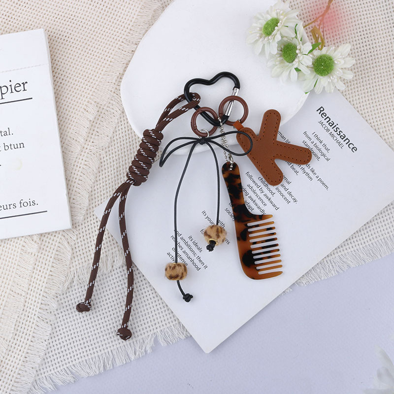 새로운 한국 스타일 miu 스타일 창조적 인 가죽 키 빗 요소 일치하는 커플 가방 자동차 키 펜던트