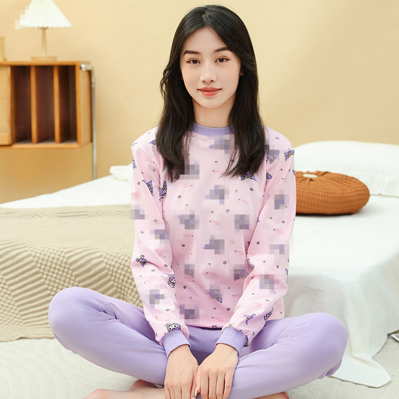 2024 가을/겨울 청소년 중간 칼라 코튼 속옷 세트 어린이 면 스웨터 홈 착용 가을 옷과 바지 두 조각