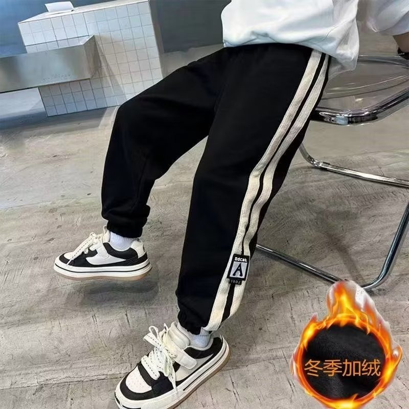 소년 바지 봄과 가을 바지 2024 중대형 어린이 가을 겨울 기모 스포츠 바지 어린이 원피스 벨벳 바지스토어 가기