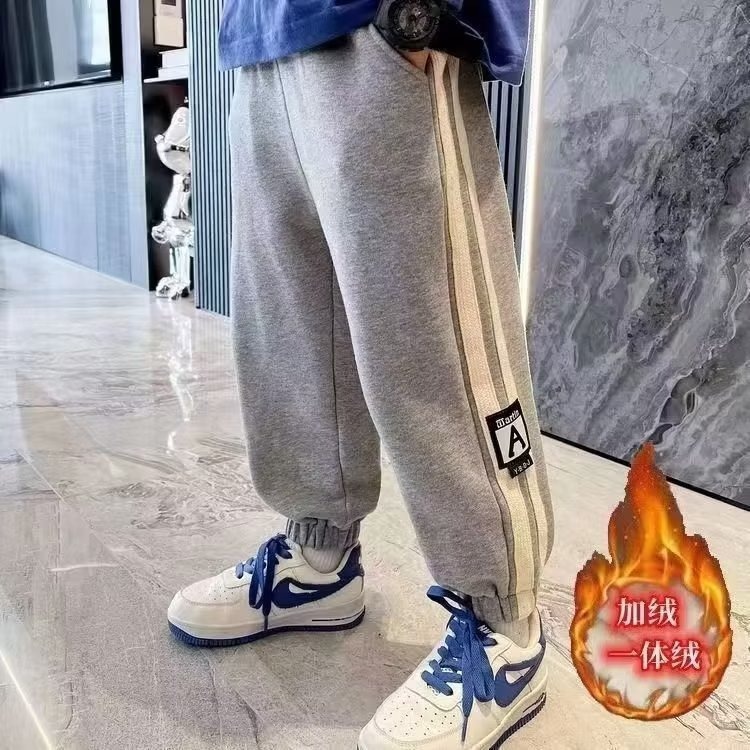 소년 바지 봄과 가을 바지 2024 중대형 어린이 가을 겨울 기모 스포츠 바지 어린이 원피스 벨벳 바지