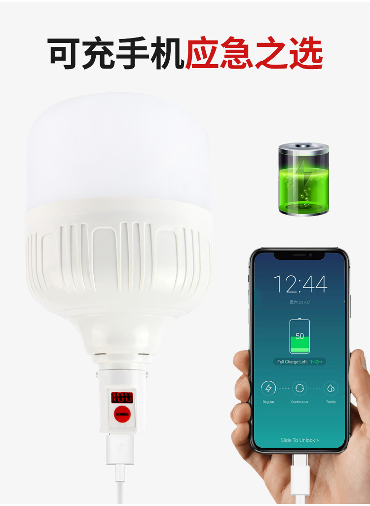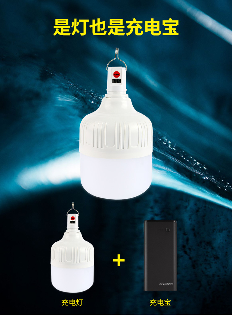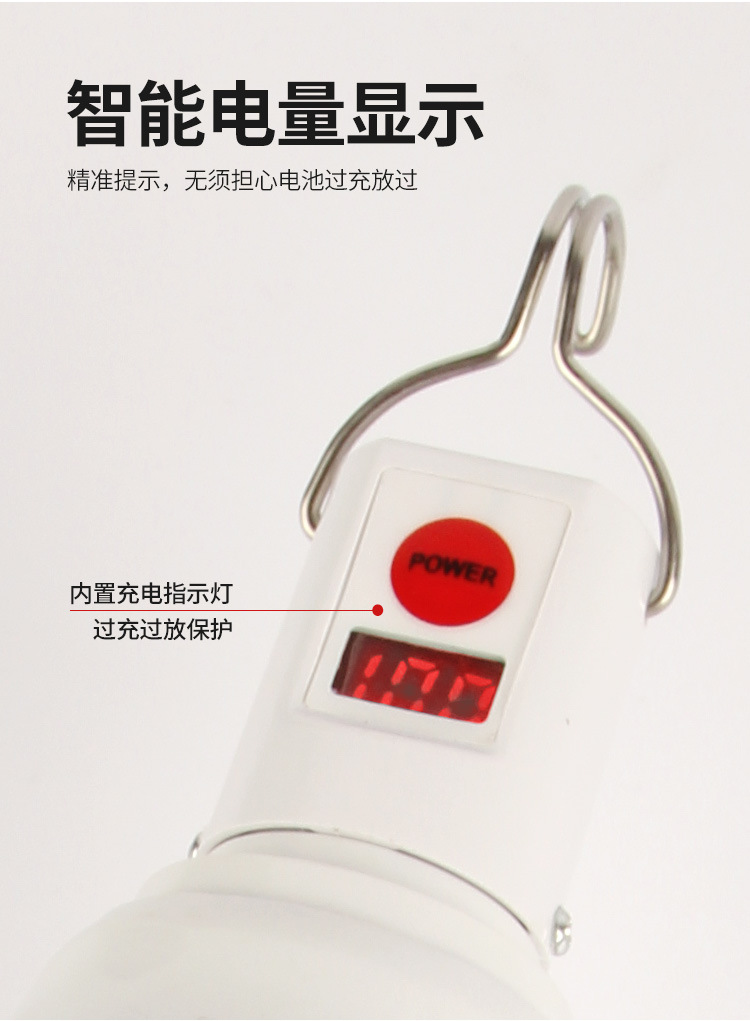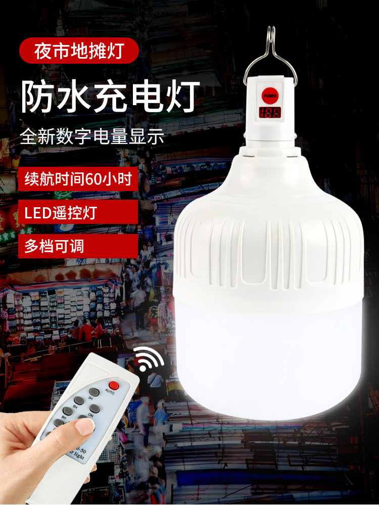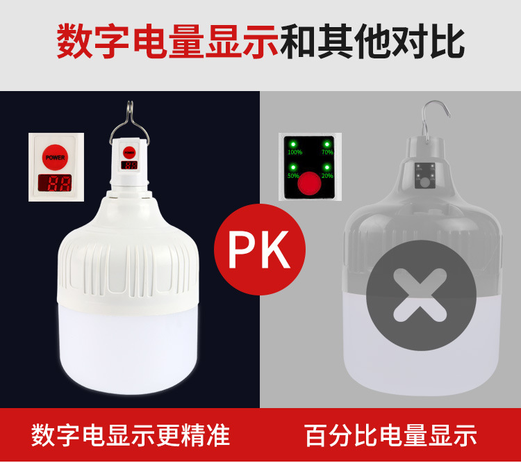 충전 디지털 디스플레이 전구 야간 시장 실속 조명 야외 LED 비상 조명 밝은 배터리 충전 전구