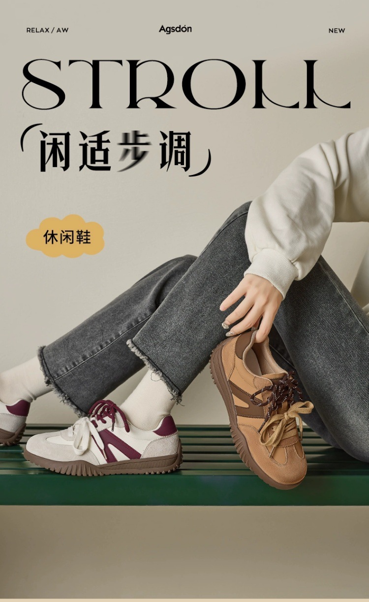 여성용 아우구시덴 트레이닝 슈즈 2025 신상 봄 두꺼운 밑창 스포츠 신발 메일라드 캐주얼 레트로 배색 스니커즈