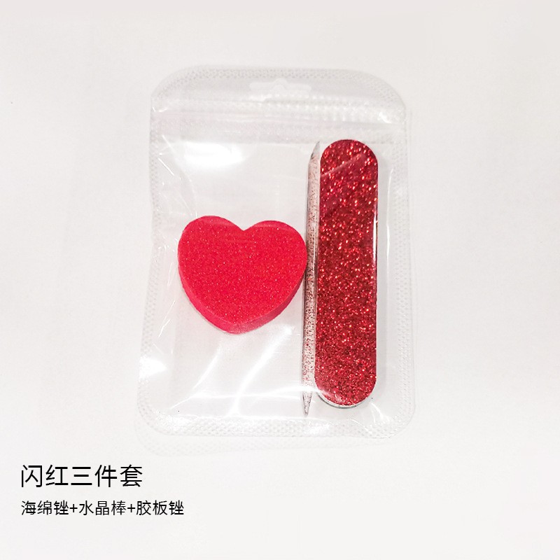 네일 도구 키트 네일 파일 네일 크리스탈 로드 하트 스폰지 파일 3 조각 세트 도매