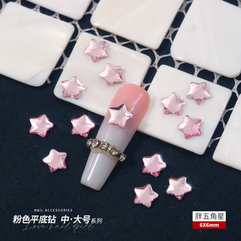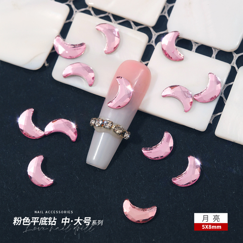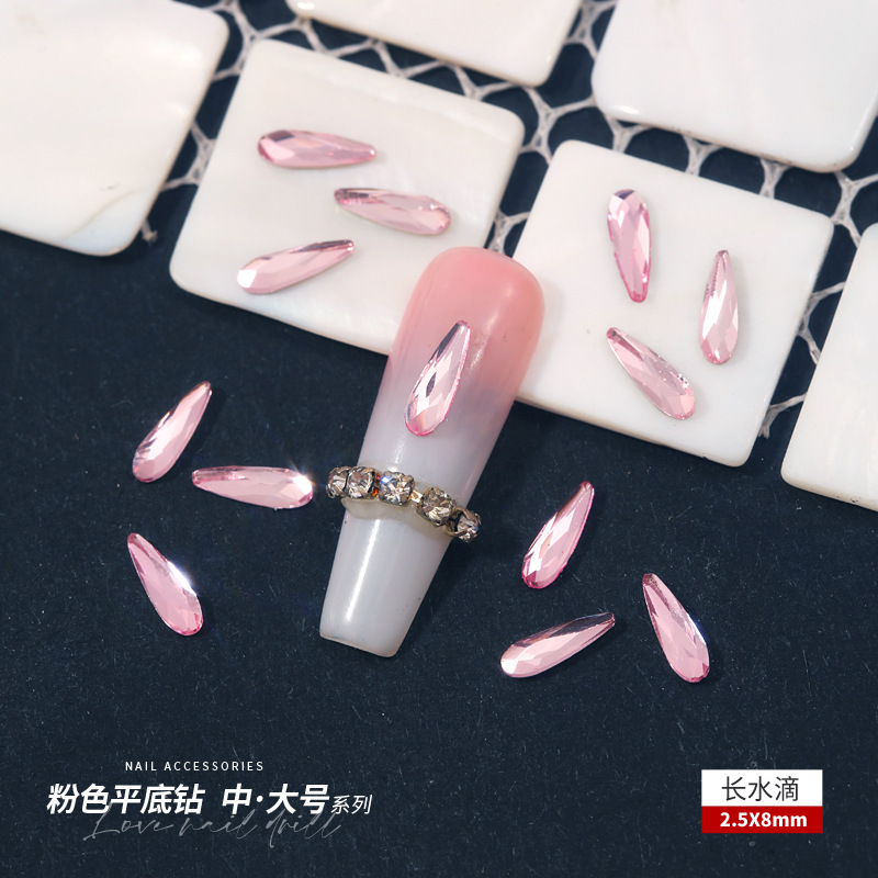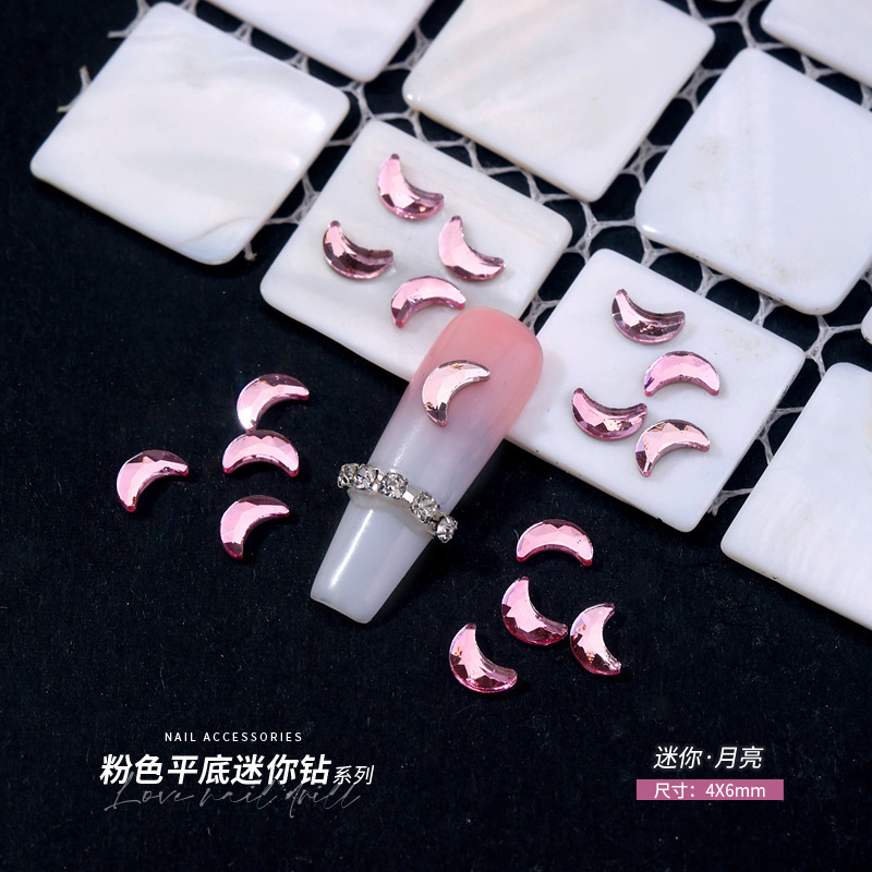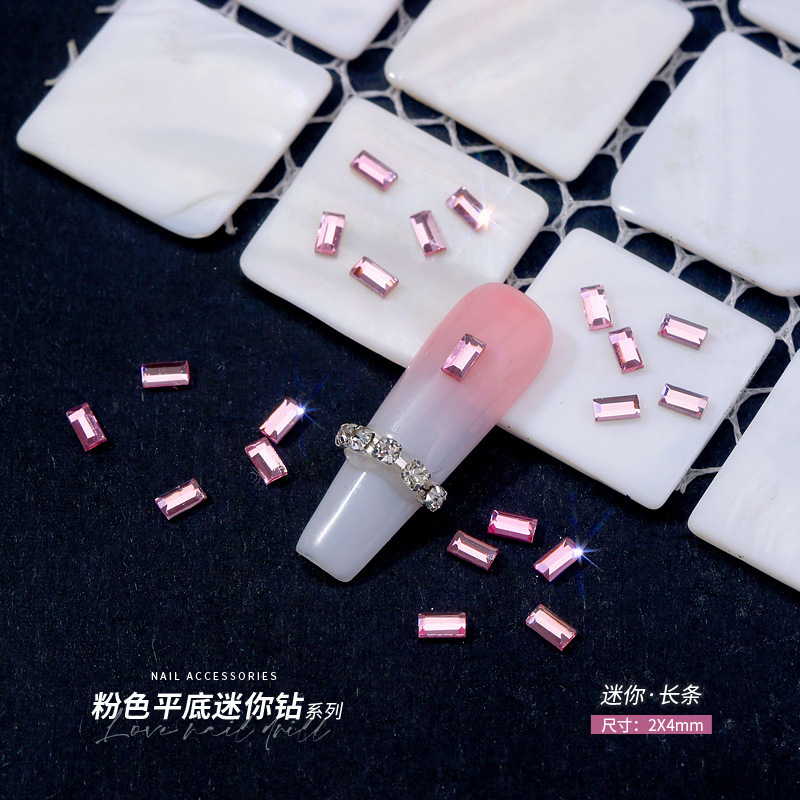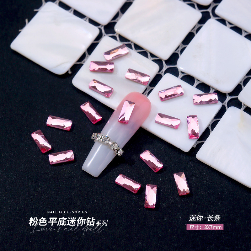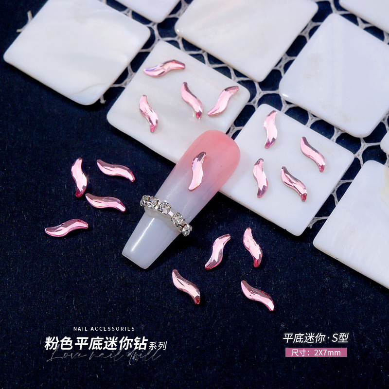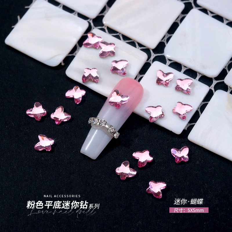 리 티안 라이트 핑크 미니 스몰 사이즈 플랫 바닥 특수 모양의 다이아몬드 소녀 핑크 사랑 나비 네일 K9 유리 네일 쥬얼리