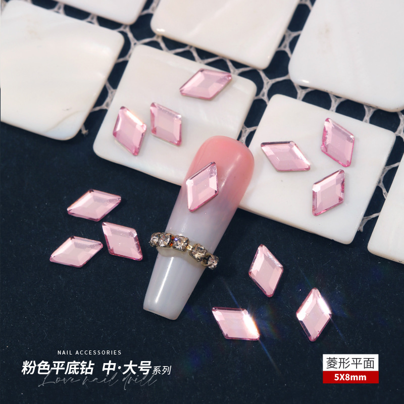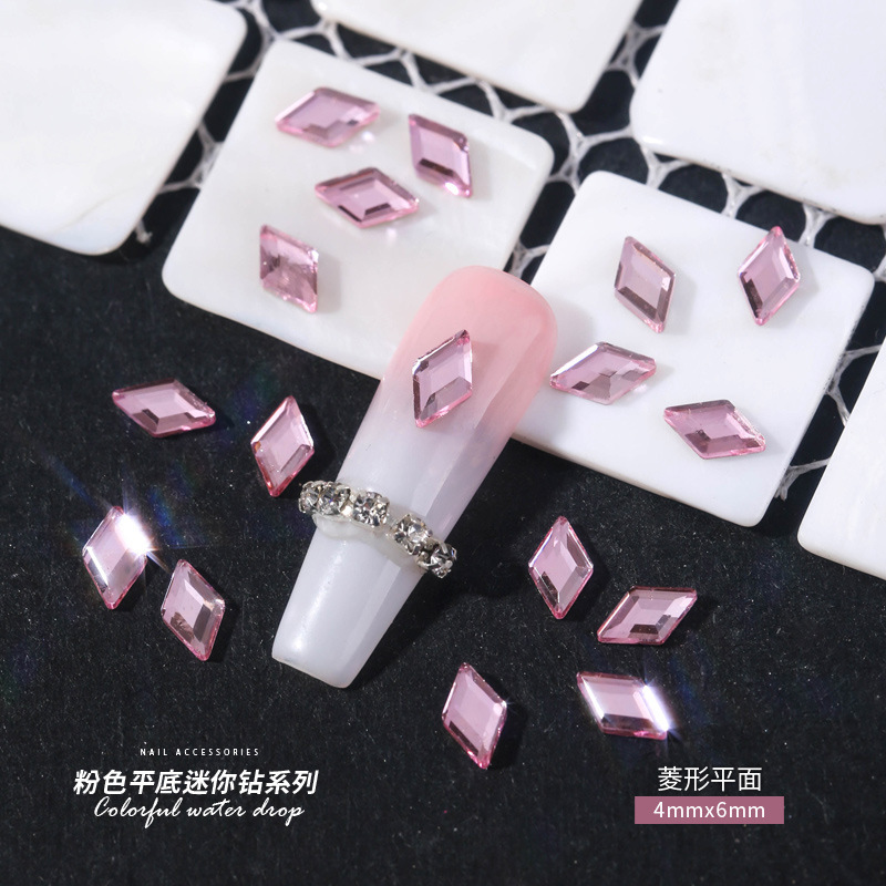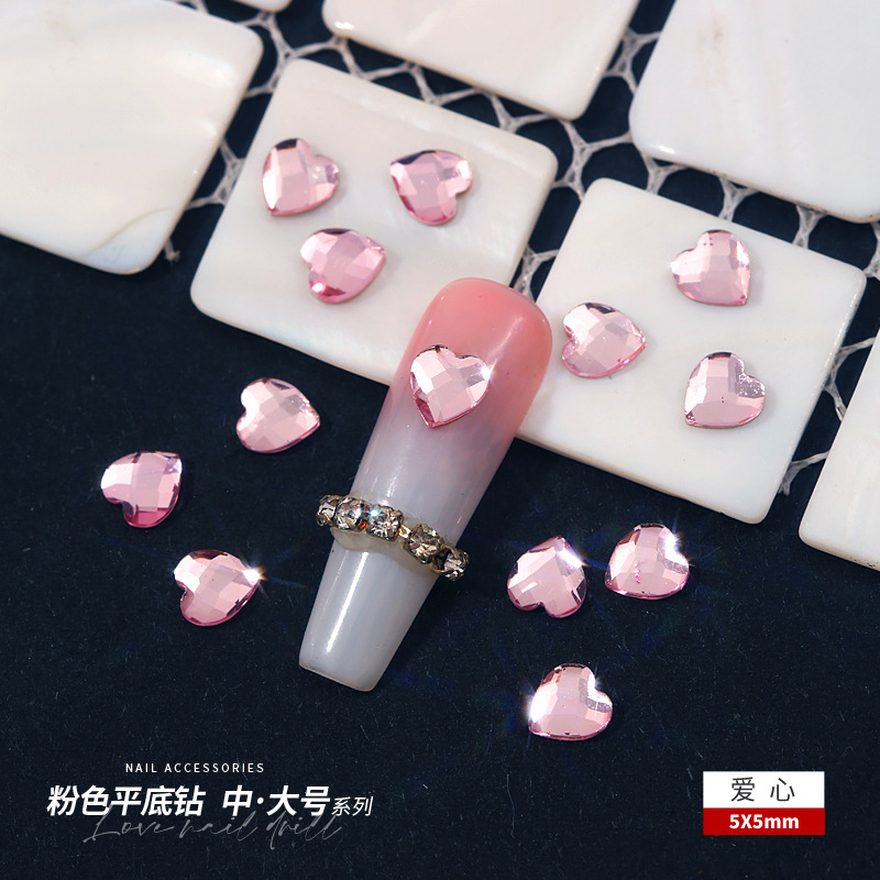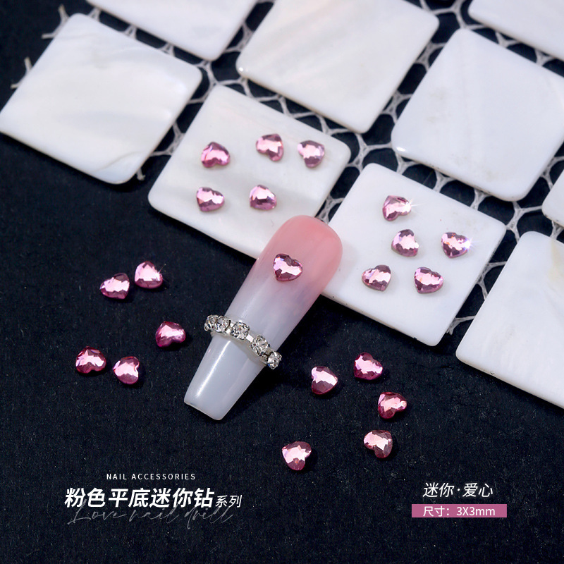 리 티안 라이트 핑크 미니 스몰 사이즈 플랫 바닥 특수 모양의 다이아몬드 소녀 핑크 사랑 나비 네일 K9 유리 네일 쥬얼리스토어 가기