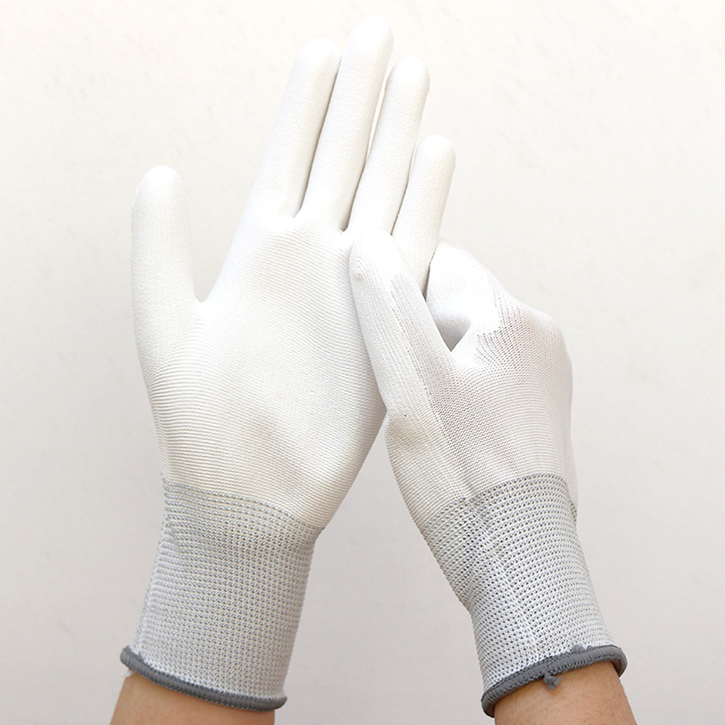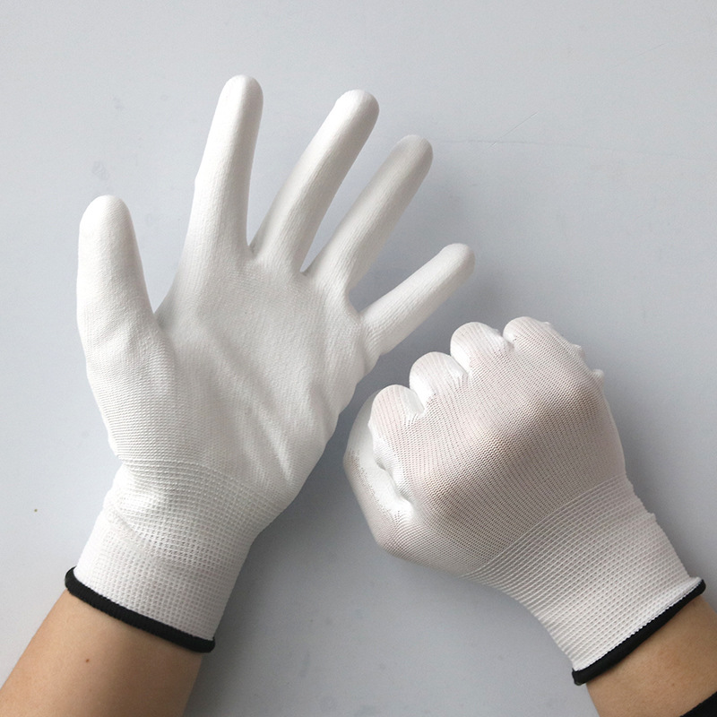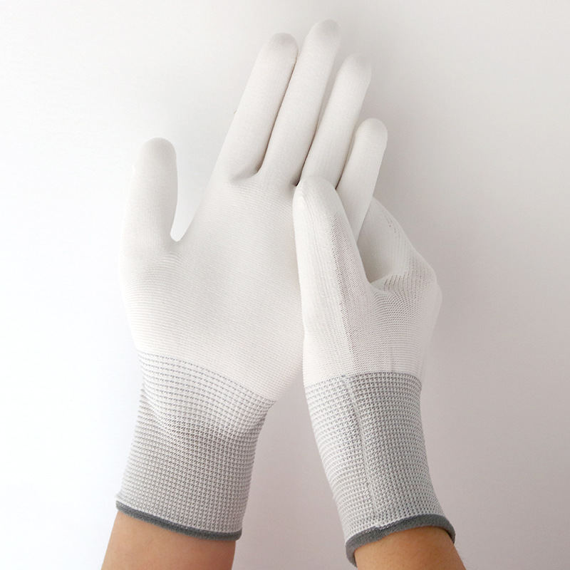 정전기 방지 흰색 회색 검은 색 나일론 PU 코팅 손바닥 장갑 코팅 손가락 먼지없는 공장 작업 노동 보호 장갑 도매