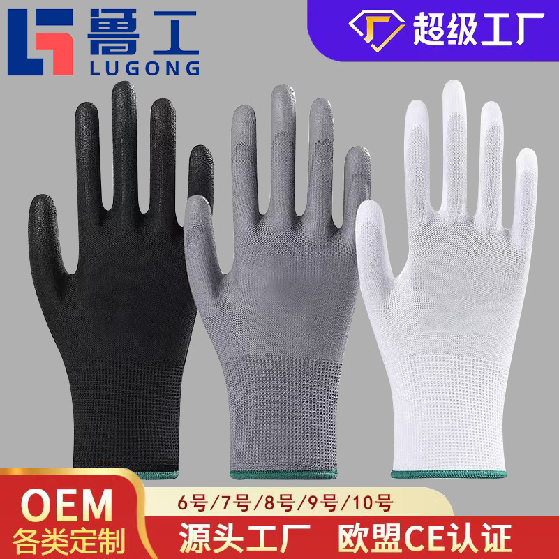 정전기 방지 흰색 회색 검은 색 나일론 PU 코팅 손바닥 장갑 코팅 손가락 먼지없는 공장 작업 노동 보호 장갑 도매스토어 가기
