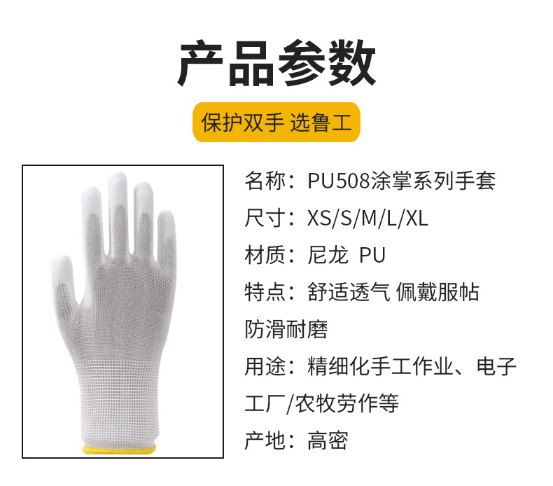 • PU508 흰색 코팅 손바닥 S/7(노란색 가장자리)