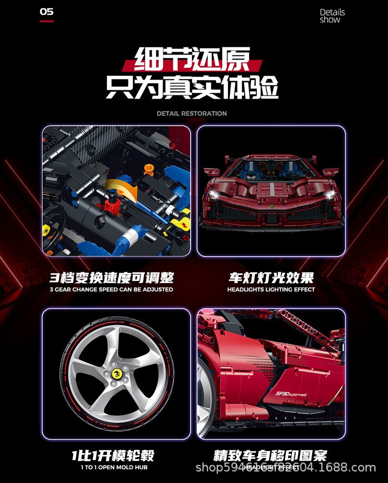 굴리 10623 슈퍼 런 시리즈-3982 입자 페라리 SF90 XX 교육 빌딩 블록 장난감 도매스토어 가기