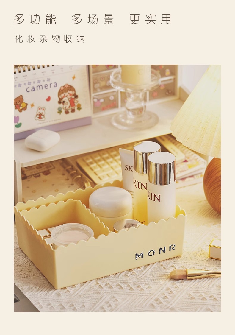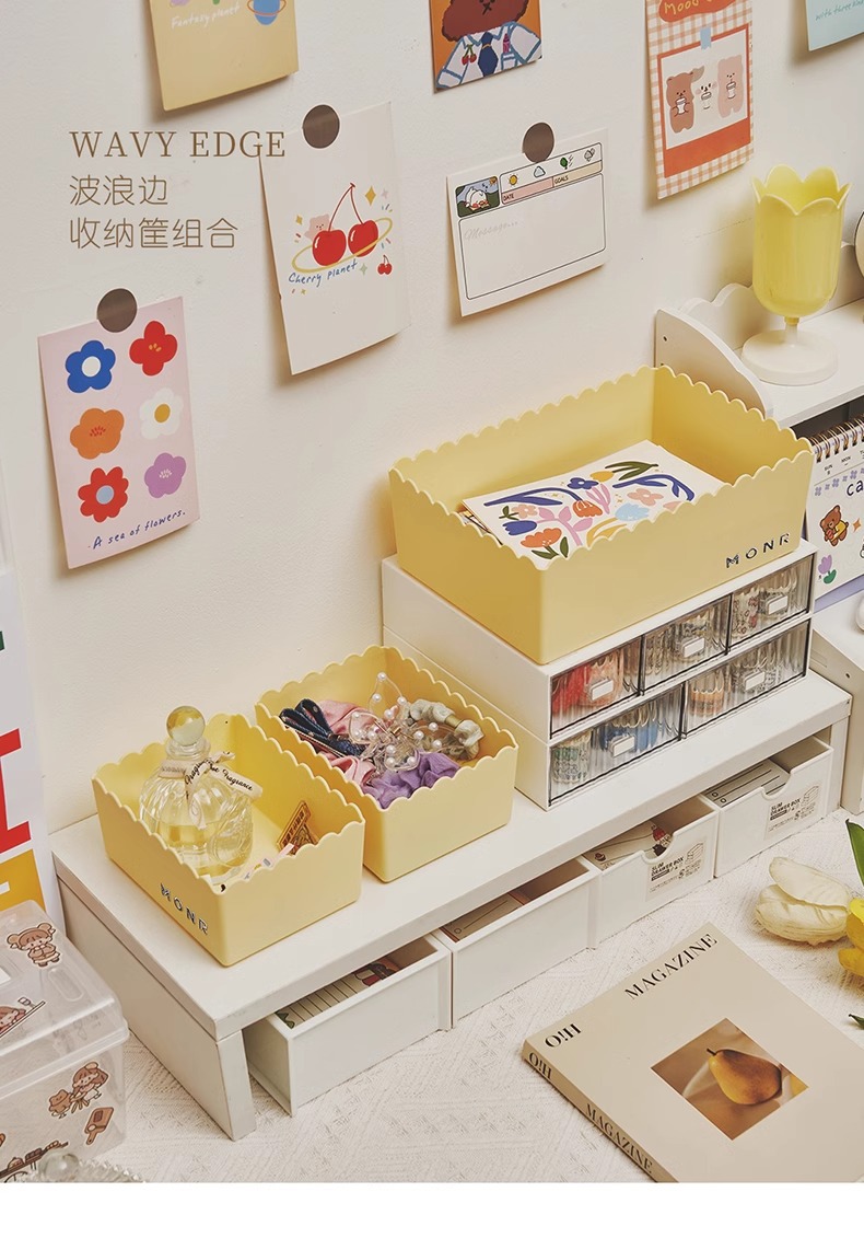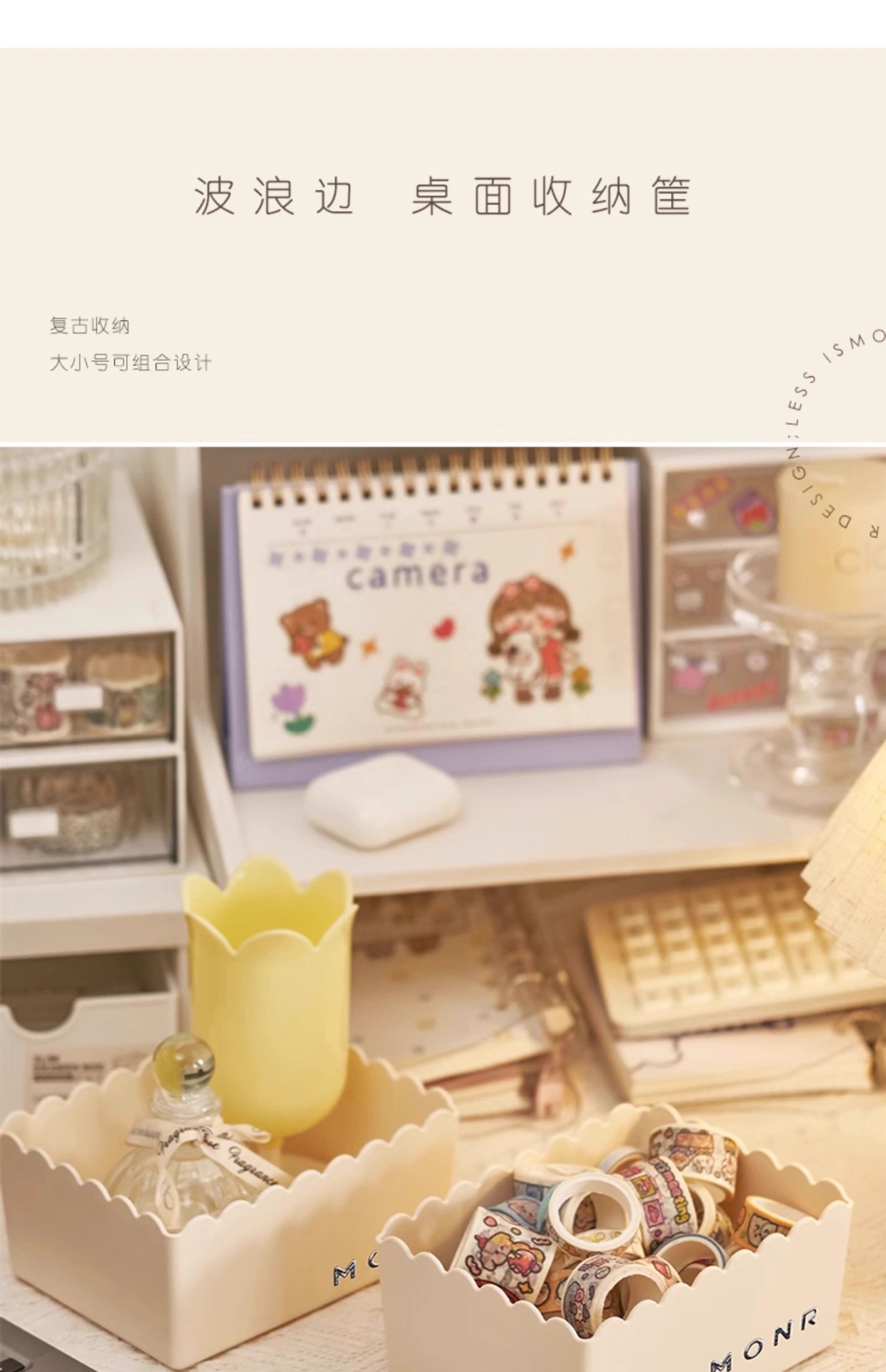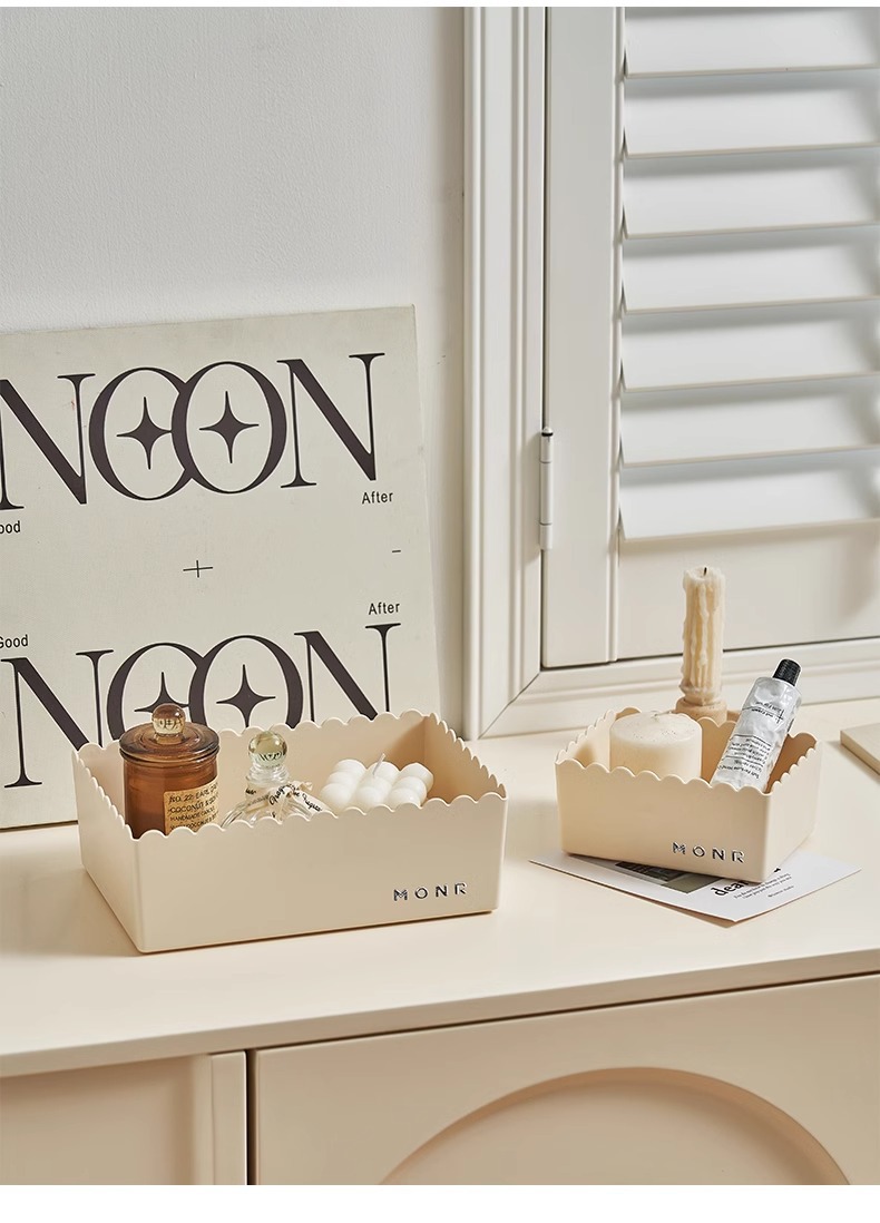 크림 바람 데스크탑 저장 상자 학생 기숙사 책상 물결 모양의 가장자리 잡화 저장 바구니 소녀 화장품 마무리 상자