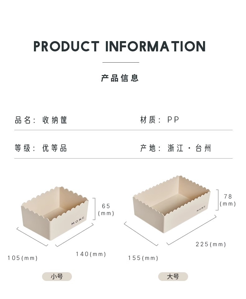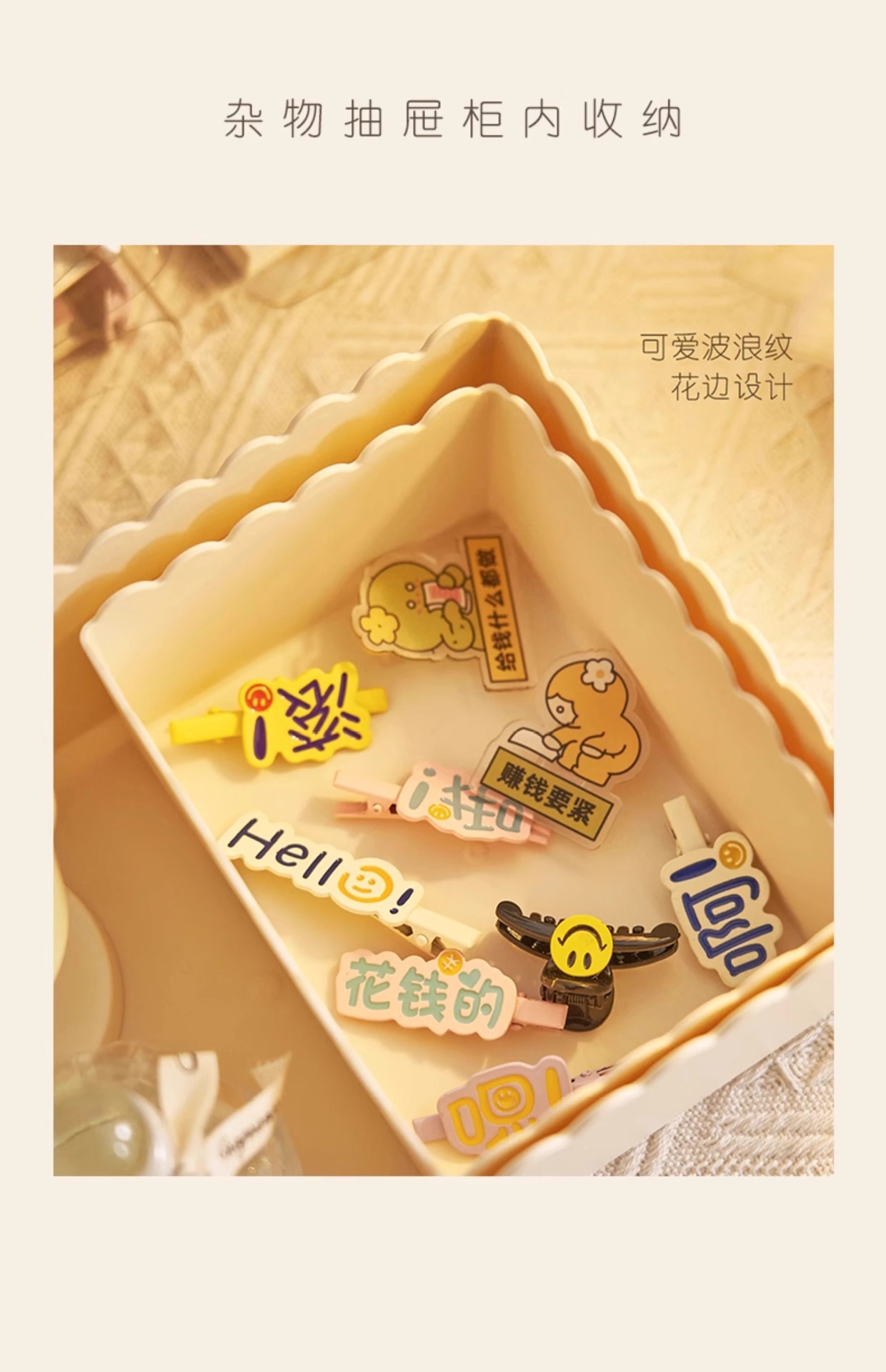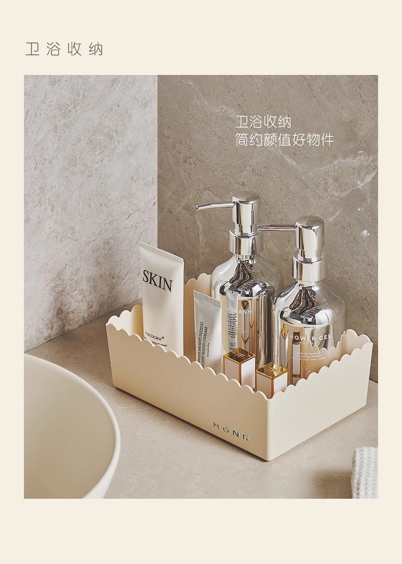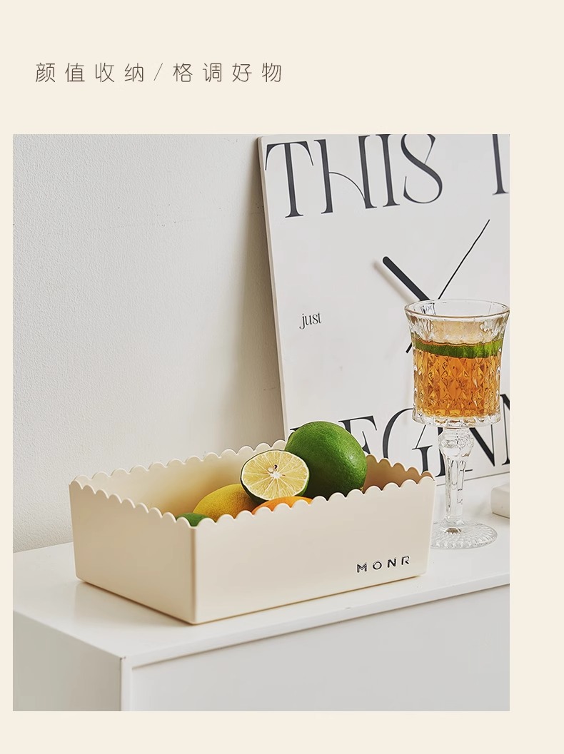 크림 바람 데스크탑 저장 상자 학생 기숙사 책상 물결 모양의 가장자리 잡화 저장 바구니 소녀 화장품 마무리 상자