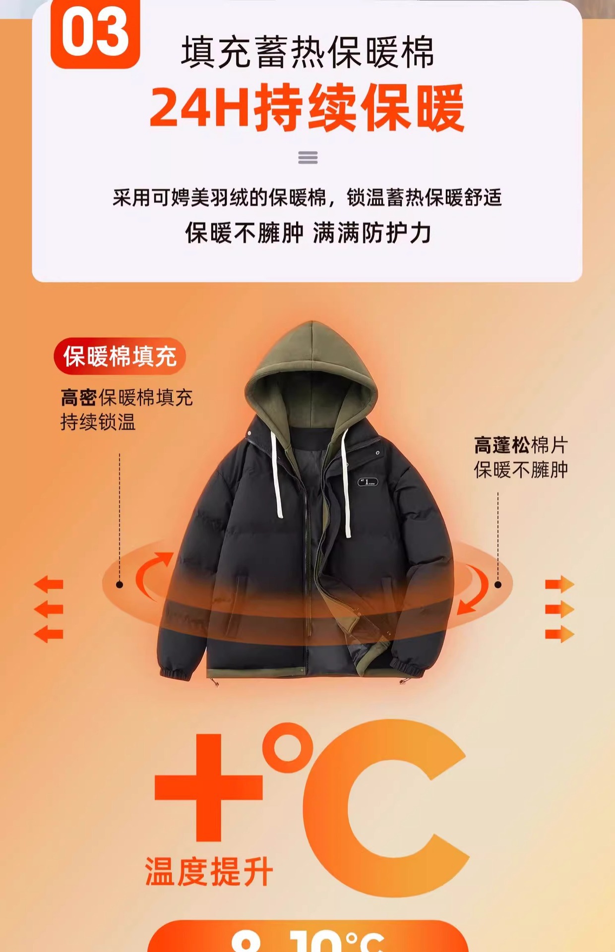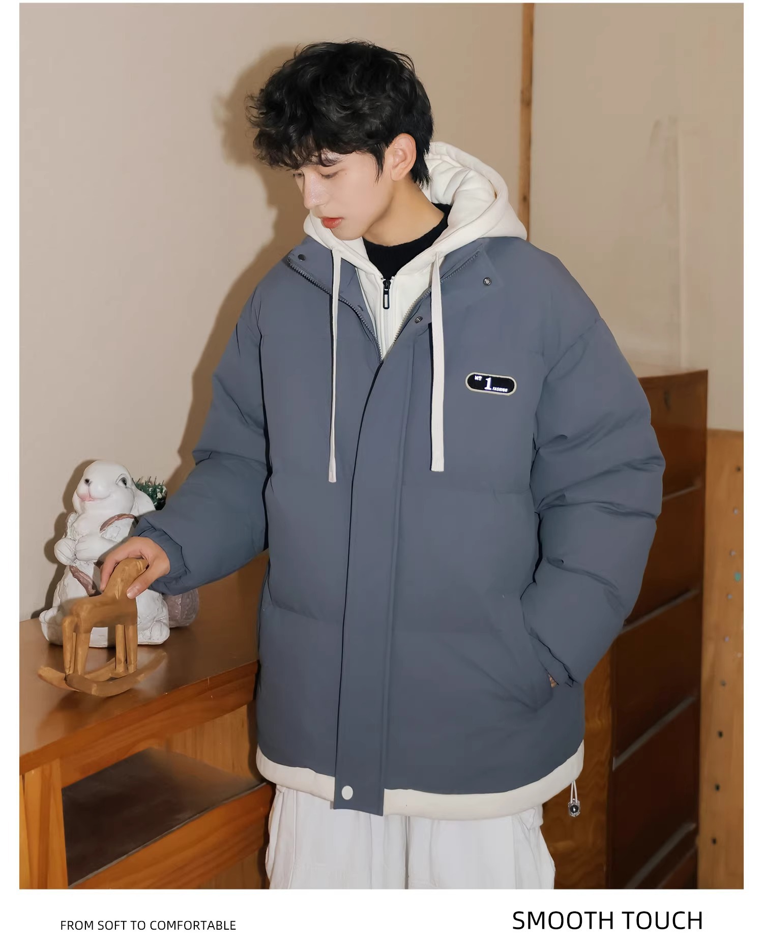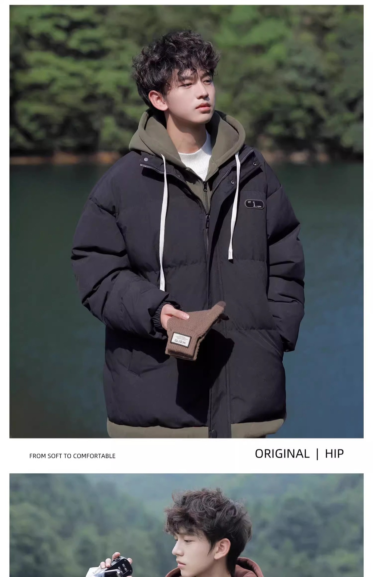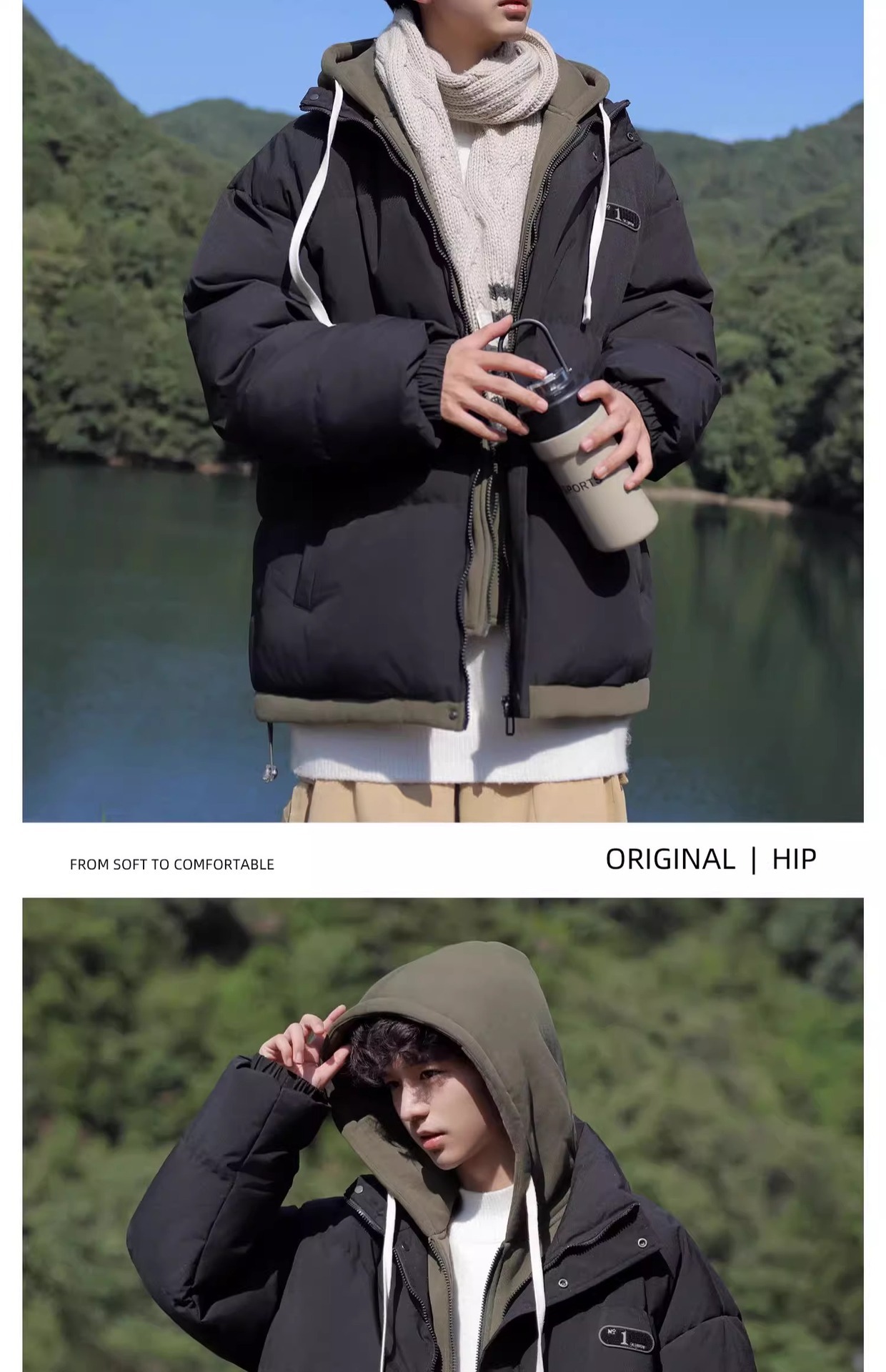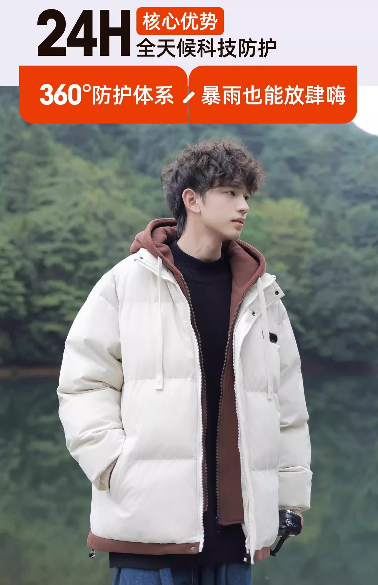 NASA 미국식 가짜 2 피스 후드 코튼 패딩 재킷 남자 겨울 2024 새로운 패션 브랜드 두꺼운 냉간 다운 코튼 패딩 재킷스토어 가기