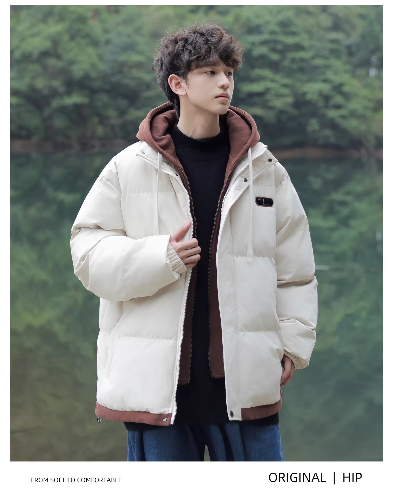 NASA 미국식 가짜 2 피스 후드 코튼 패딩 재킷 남자 겨울 2024 새로운 패션 브랜드 두꺼운 냉간 다운 코튼 패딩 재킷