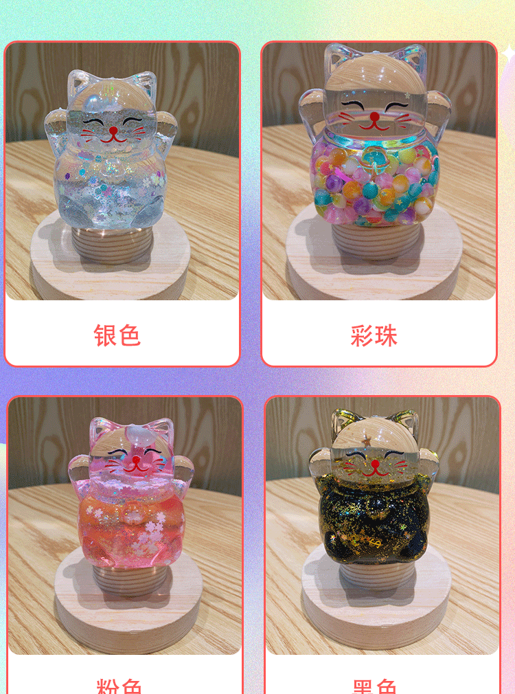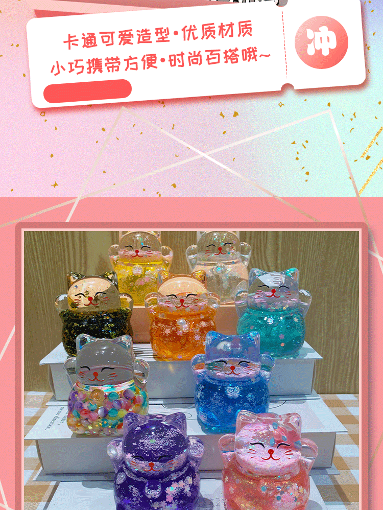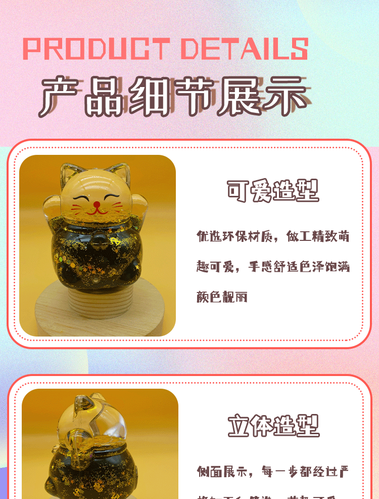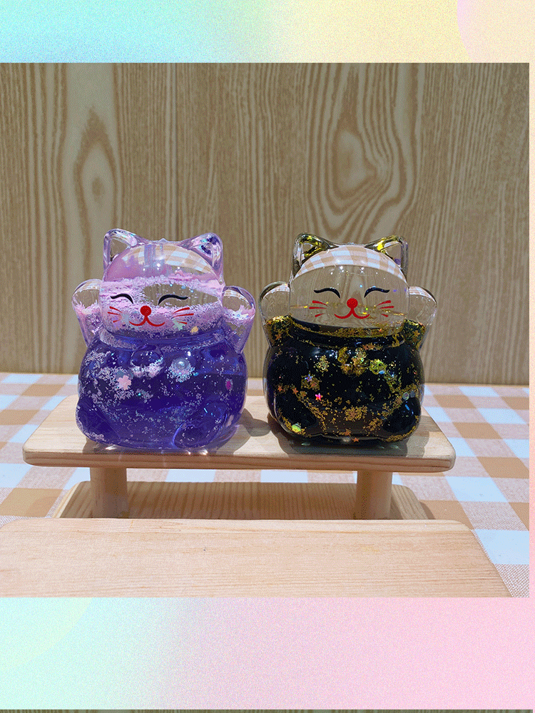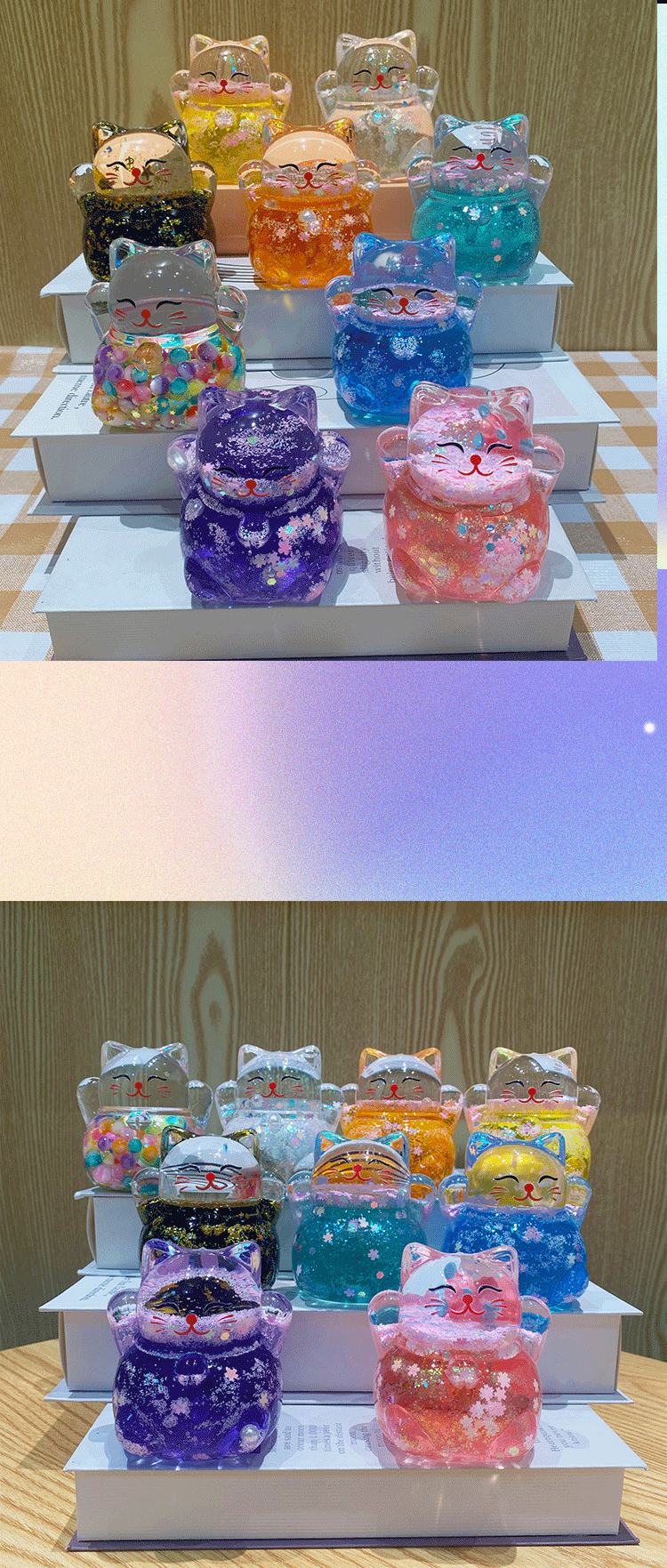 새로운 빛나는 플래시 럭키 고양이 창조적 인 퀵 샌드 장식품 도매 커플 인터넷 유명 자동차 장식품 여자 친구 선물스토어 가기