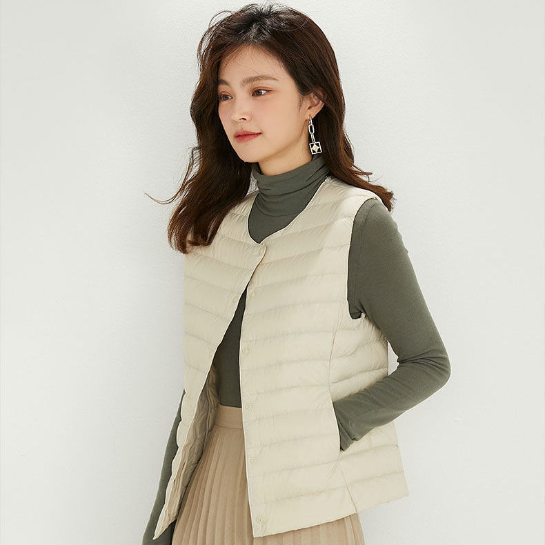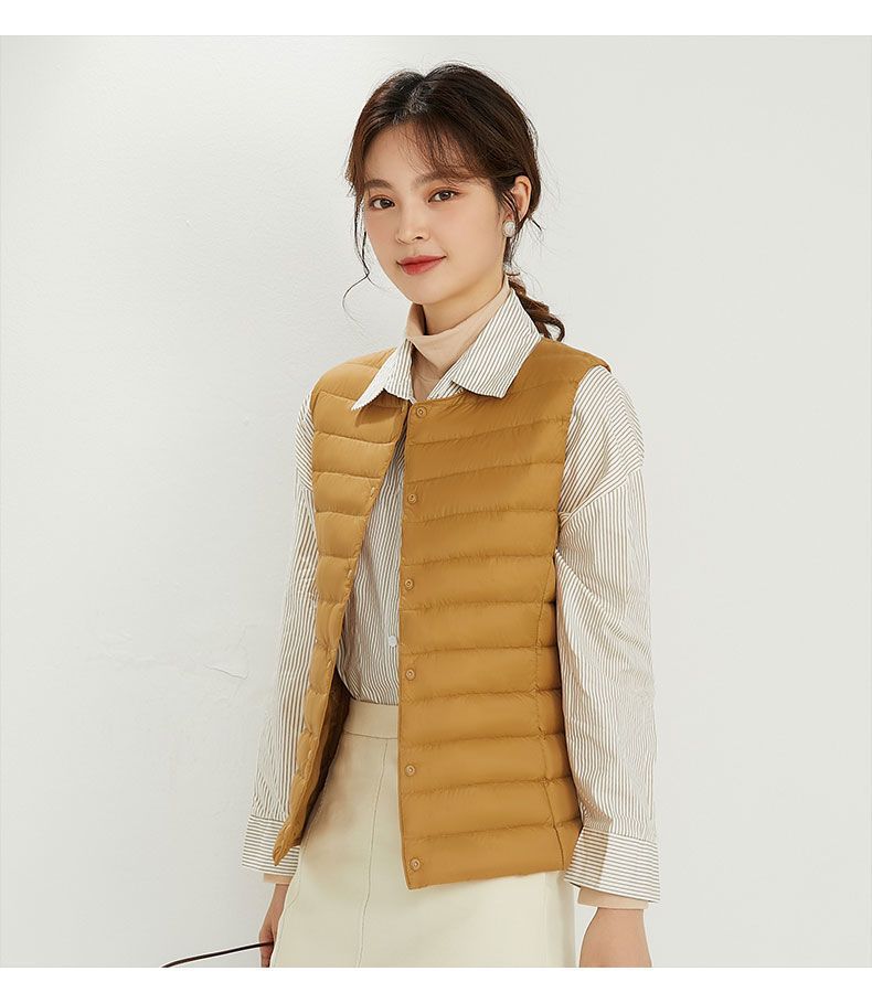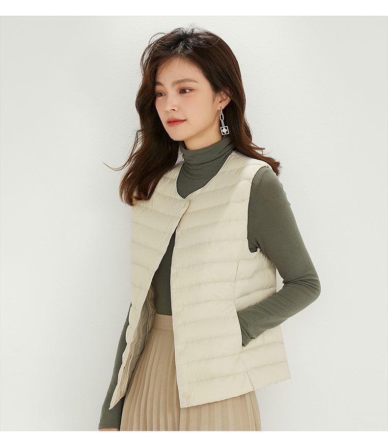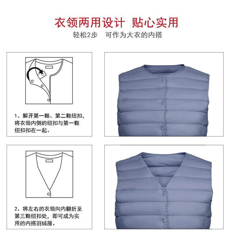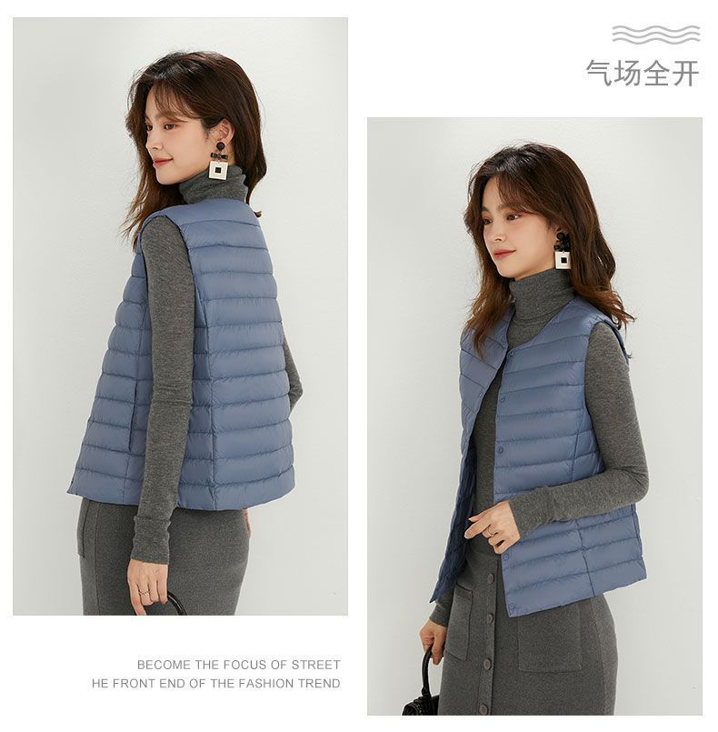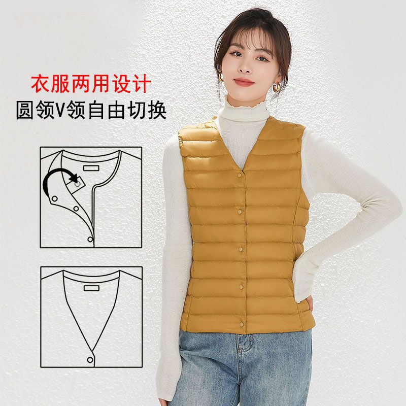 새로운 여성 칼라리스 다운 라이너 조끼 V-Neck 경량 다운 재킷 따뜻한 재킷 플러스 사이즈 허리 코트 라운드 넥 조끼스토어 가기