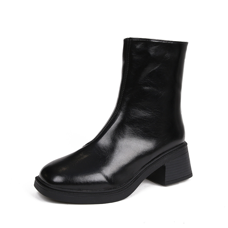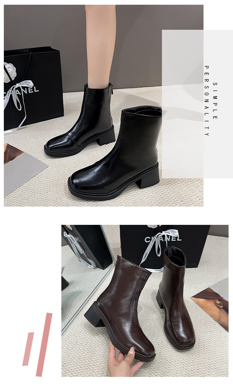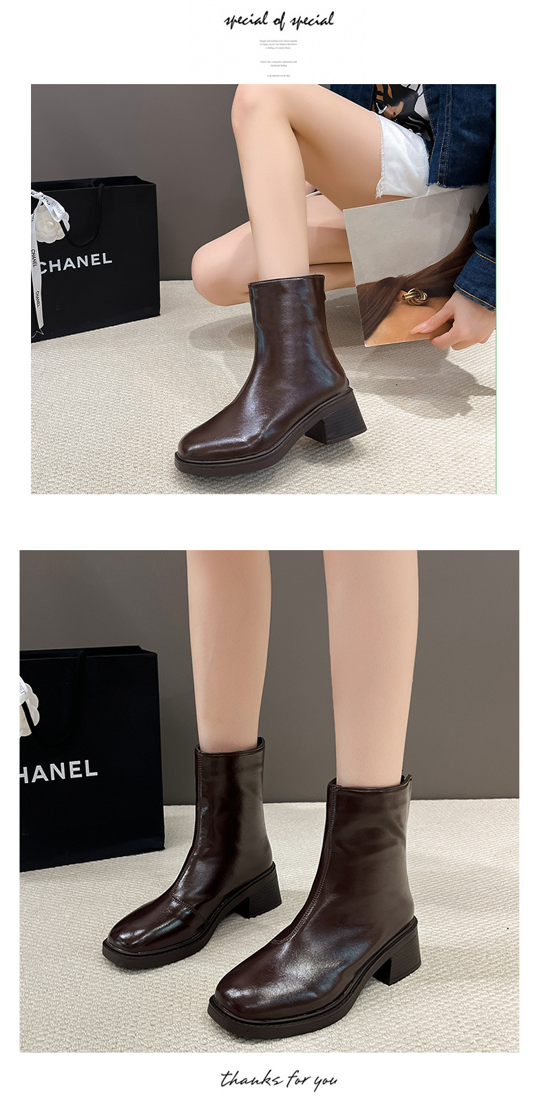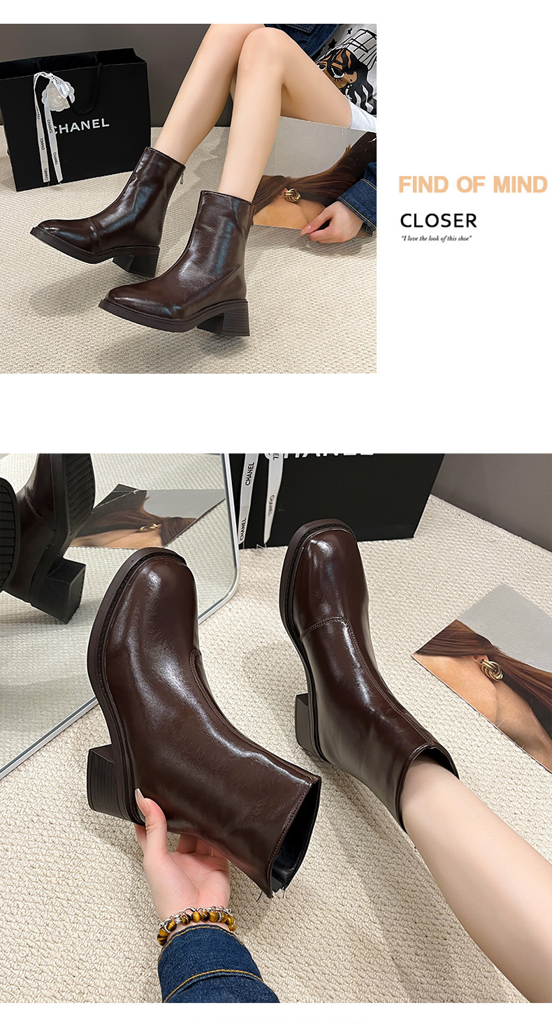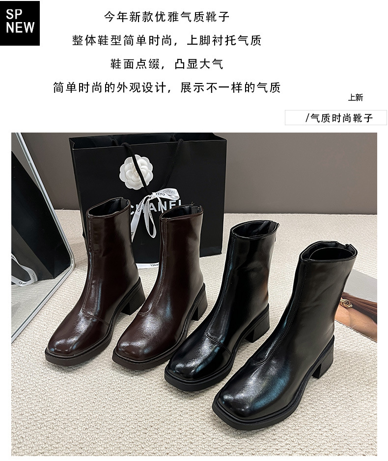 2024 가을과 겨울 새로운 미드 힐 두꺼운 힐 통근 여성 부츠 영국 스타일의 스퀘어 헤드 백 지퍼 첼시 부츠 여성 패션스토어 가기