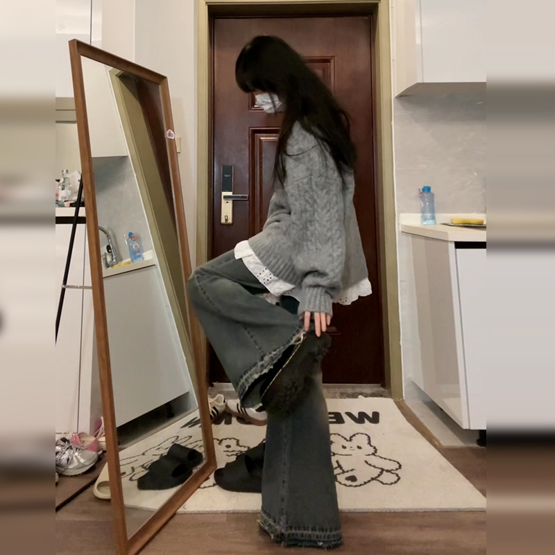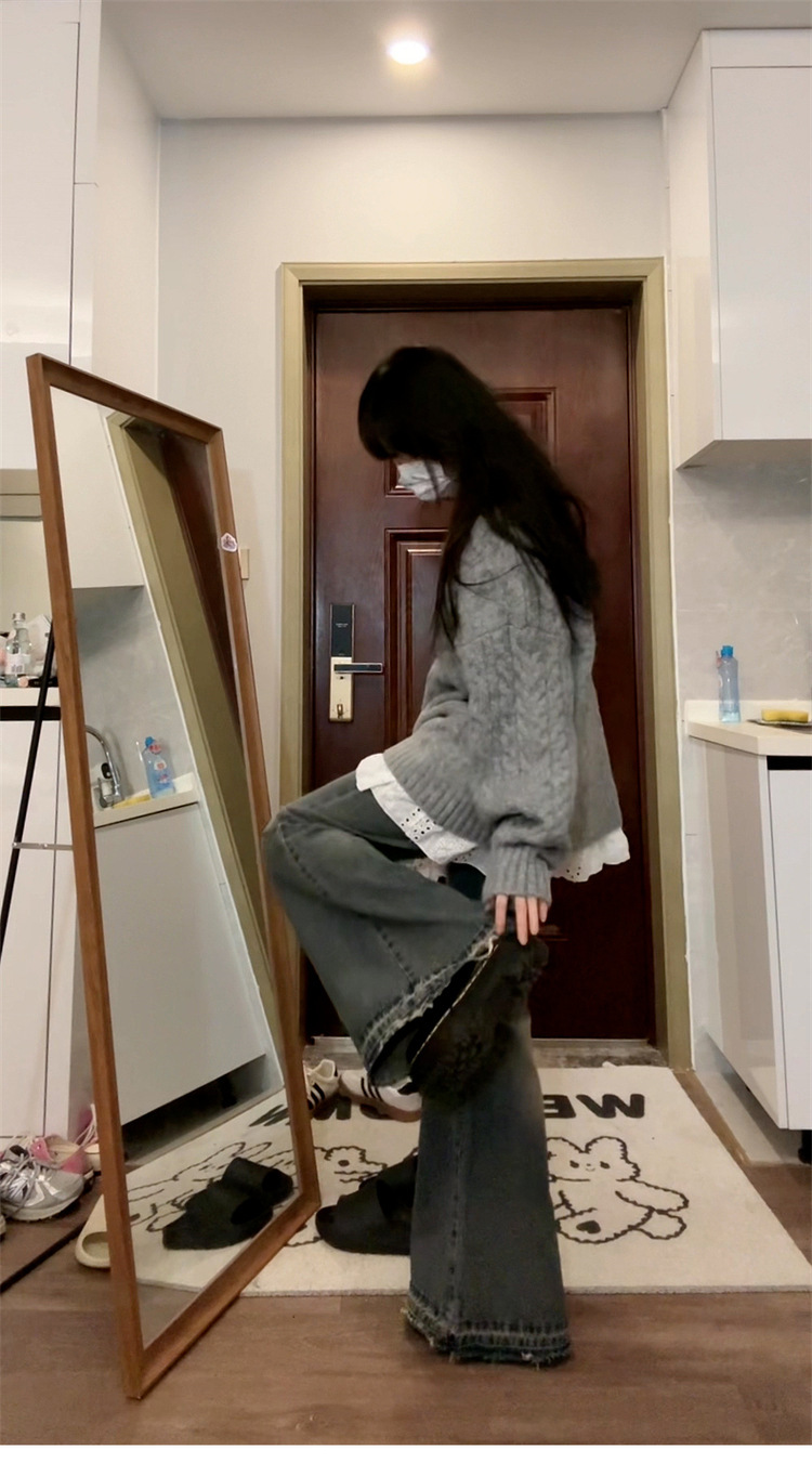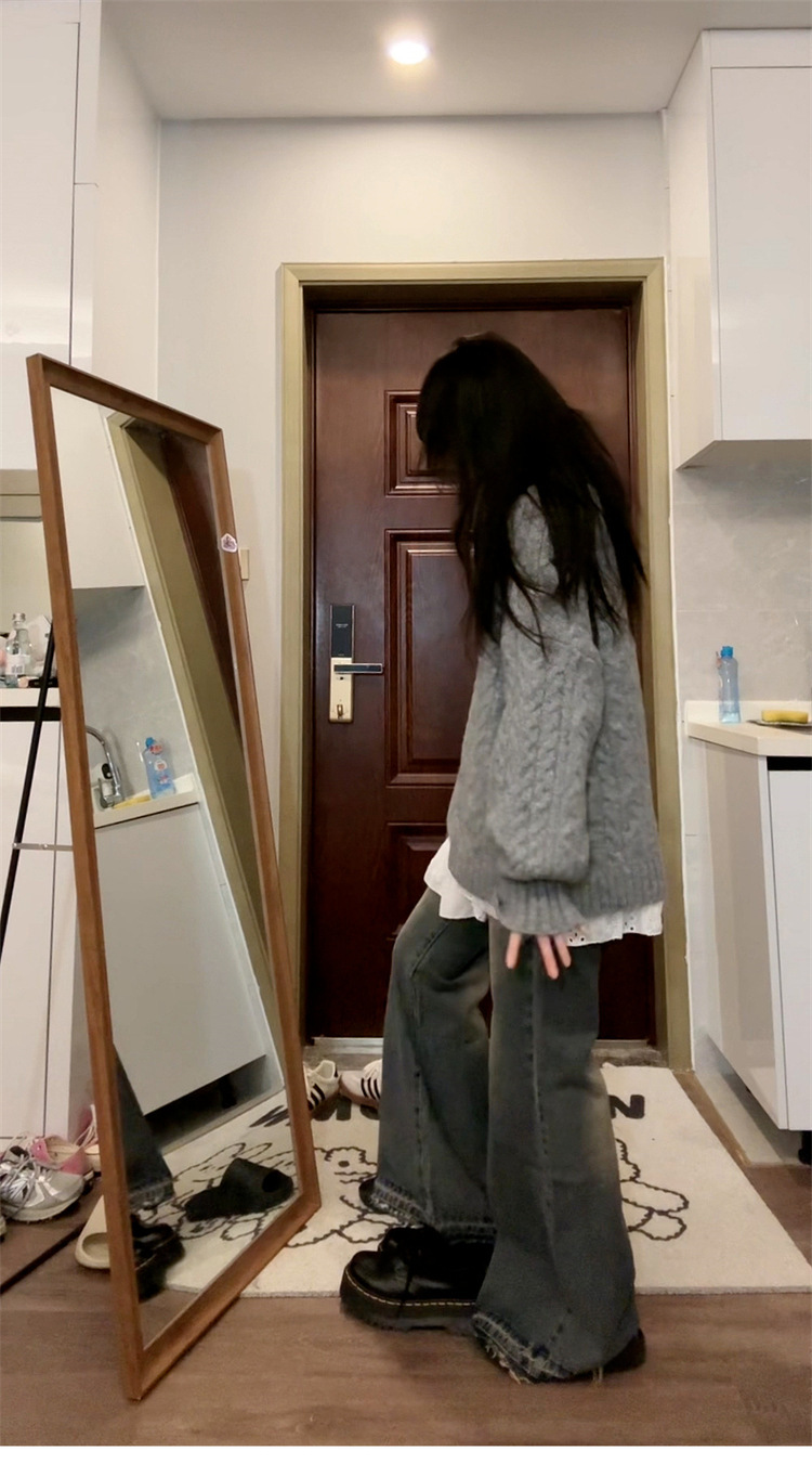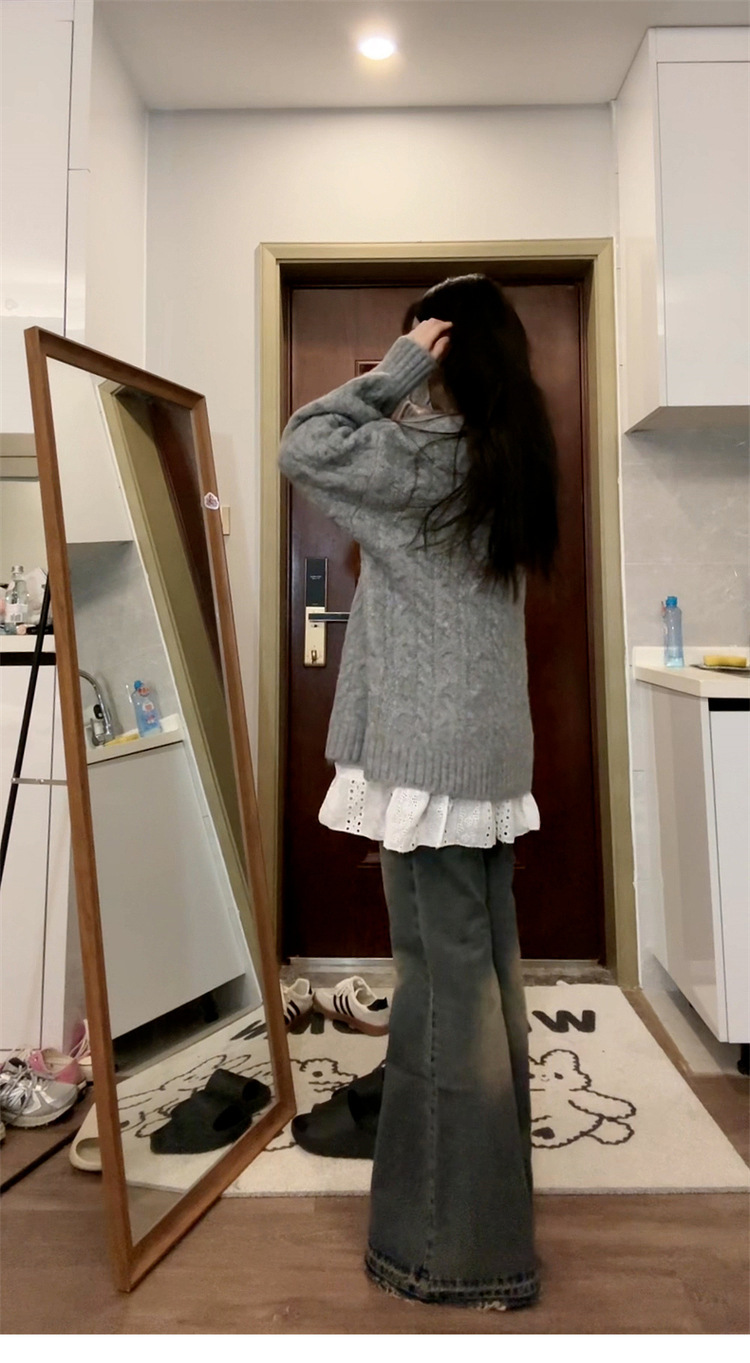 여성을위한 회색 v 넥 두꺼운 꼬임 스웨터 2025 새로운 가을 하이 엔드 게으른 스타일 캐주얼 루즈 풀오버 탑스토어 가기