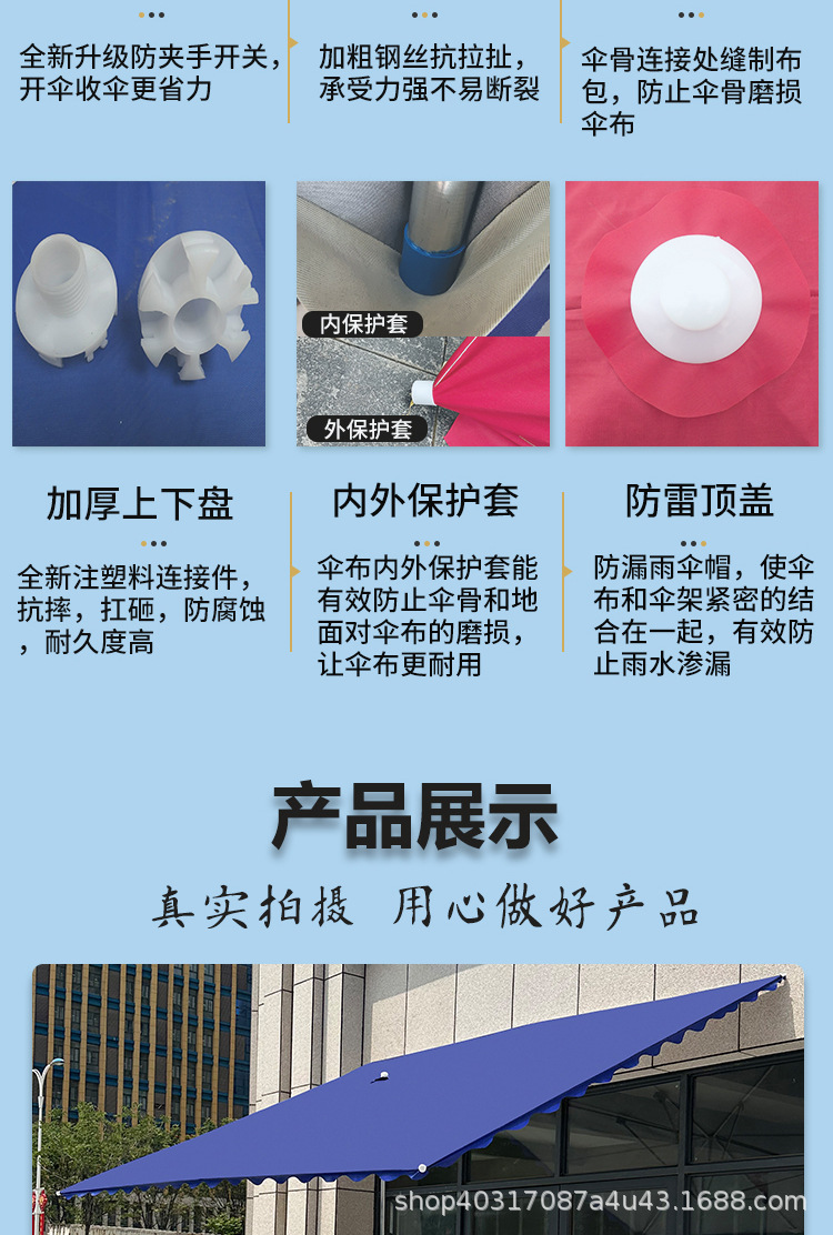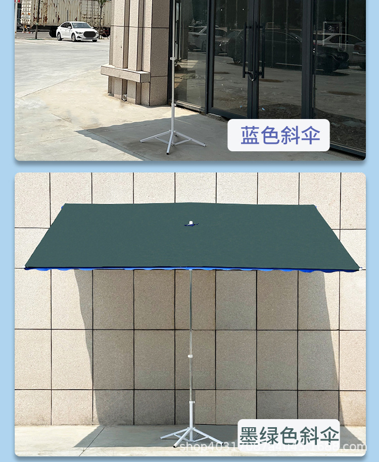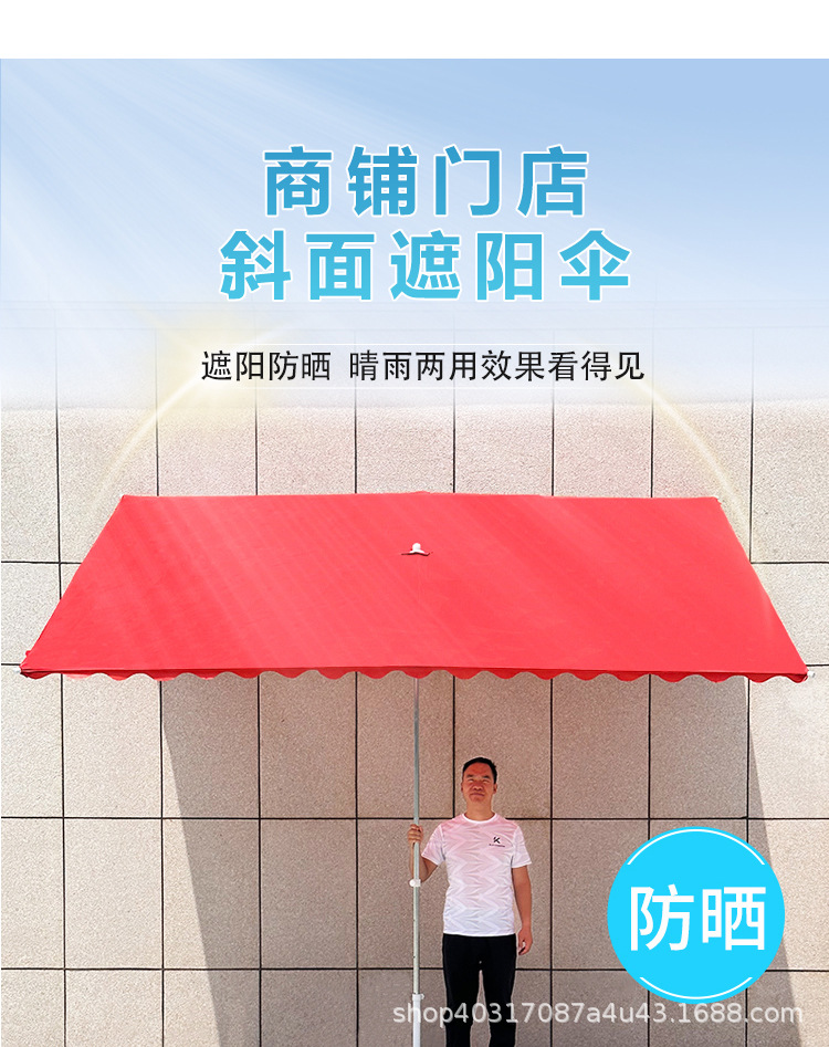 야외 판매용 파라솔, 경사형 우산, 직사각형 비바람막이, 비와 햇빛 차단, 상업용 자외선 차단스토어 가기
