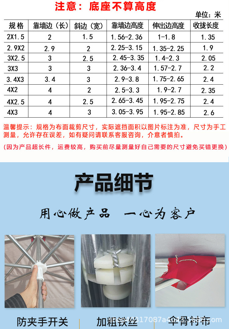 • 사선우산 3.4X 3m [특대형] 갈비뼈 6개