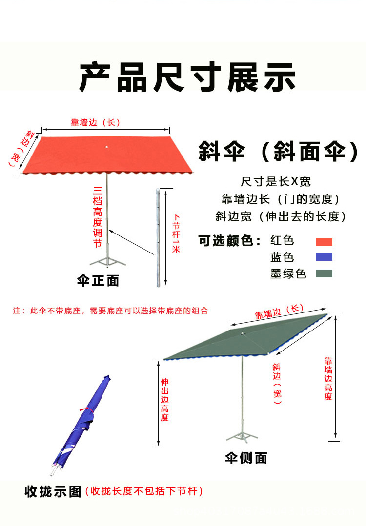 야외 판매용 파라솔, 경사형 우산, 직사각형 비바람막이, 비와 햇빛 차단, 상업용 자외선 차단