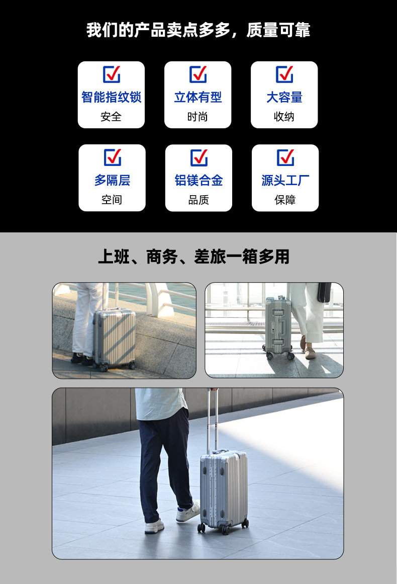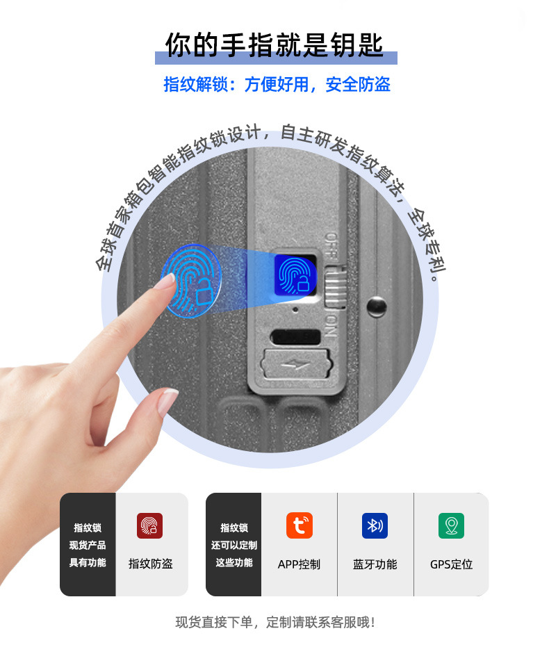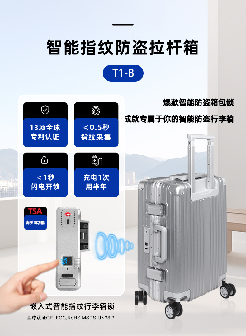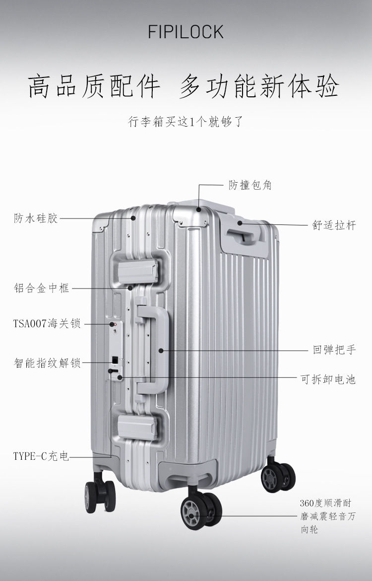 FIPILOCK 스마트 지문 잠금 도난 방지 수하물 케이스 20 인치 비행기 트롤리 케이스 TSA 세관 잠금 가방스토어 가기