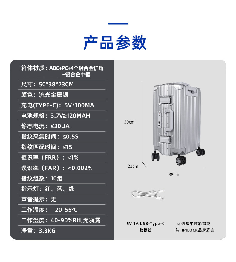 FIPILOCK 스마트 지문 잠금 도난 방지 수하물 케이스 20 인치 비행기 트롤리 케이스 TSA 세관 잠금 가방