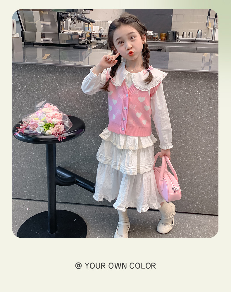 소녀 조끼 봄과 가을 새로운 어린이 니트 조끼 가을 착용 중소 어린이 허리 코트 가을 소녀 조끼