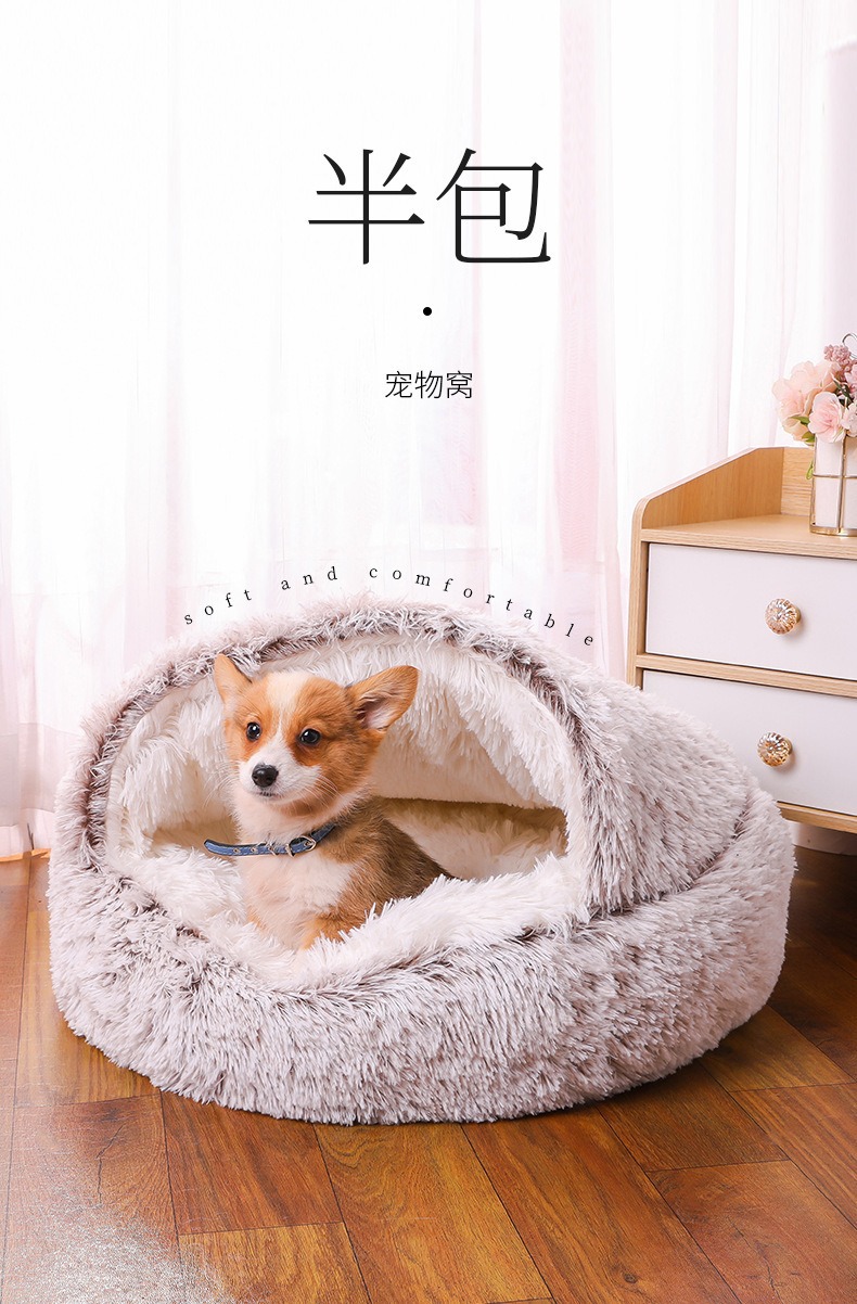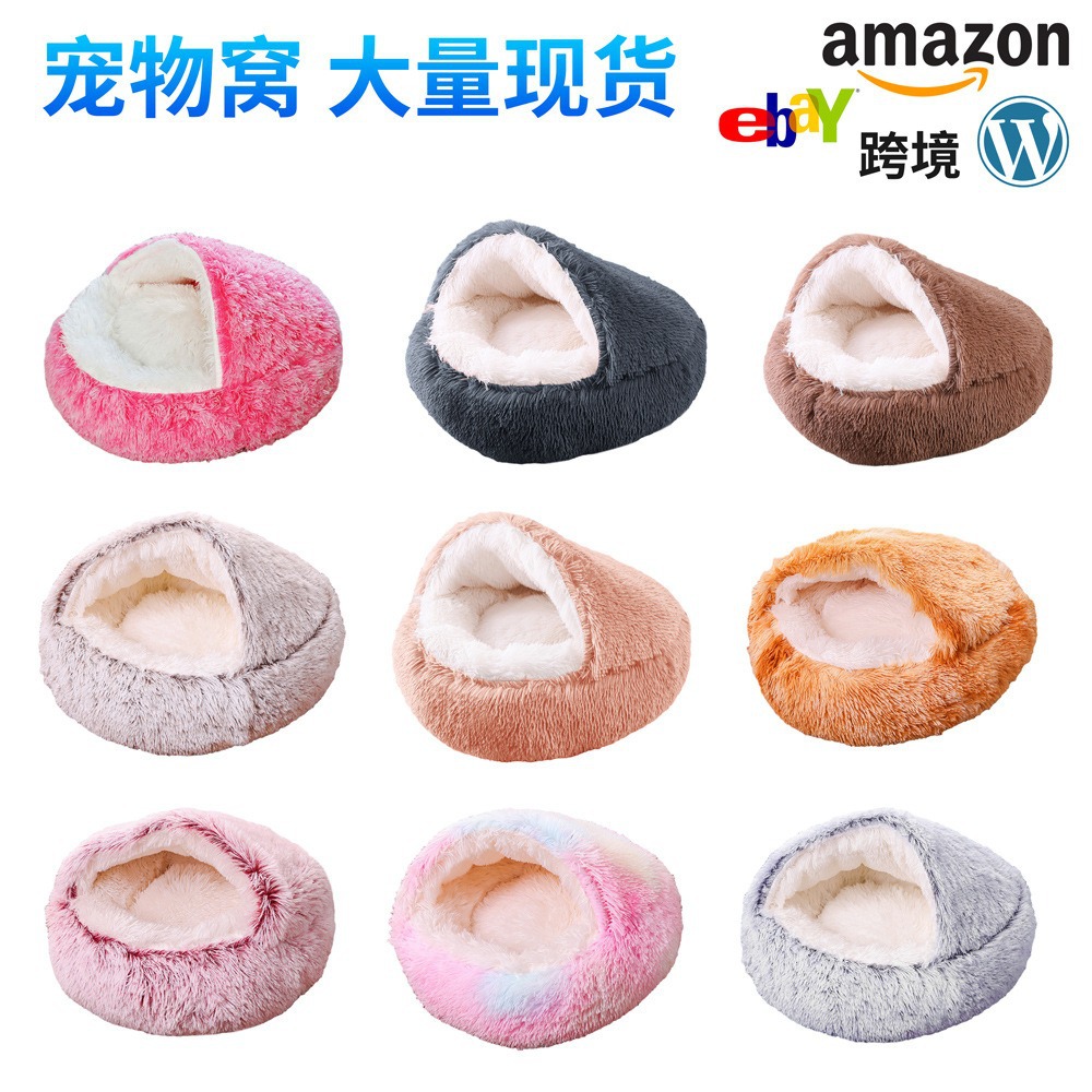 크로스보더 도매 플러시 쉘 웨이브 크리스탈 벨벳 따뜻하고 두꺼운 고양이 침낭 가을 겨울 겸용 고양이 침대 강아지 침대스토어 가기