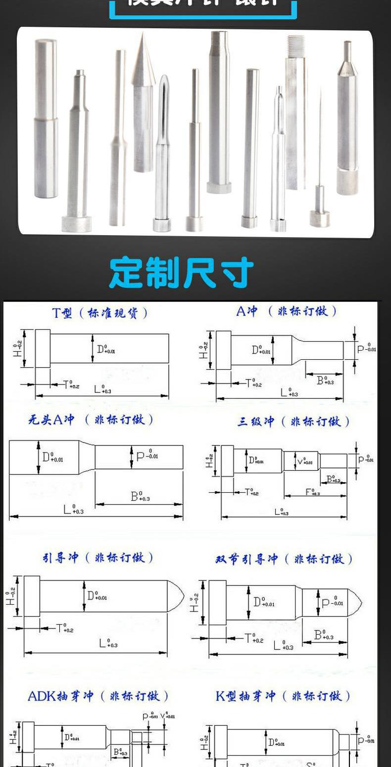 바늘 펀치 T 펀치 펀치 3 펀치 바늘 골무 실린더 편평한로드 푸시 튜브