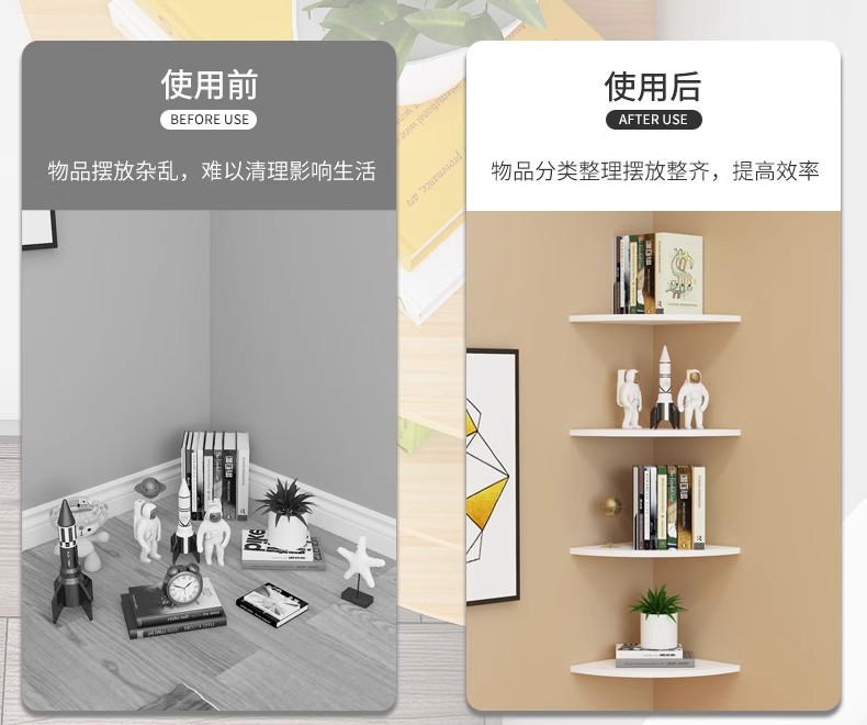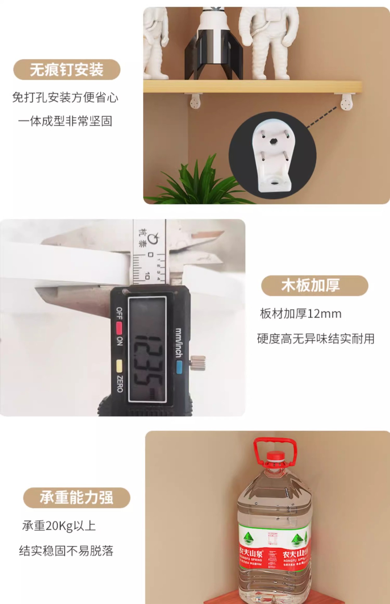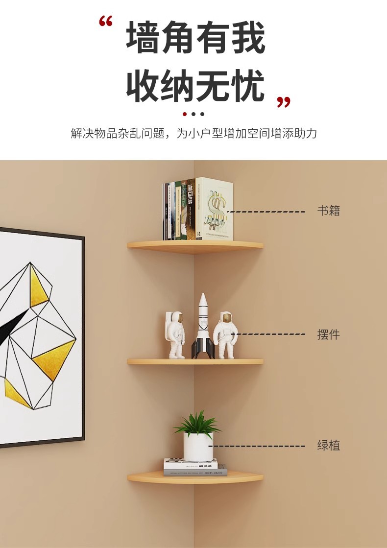 벽 모서리 선반, 구석 벽에 무타공 설치, 주방, 침실, 거실용, 나무판, 공중부양 삼각형 선반스토어 가기
