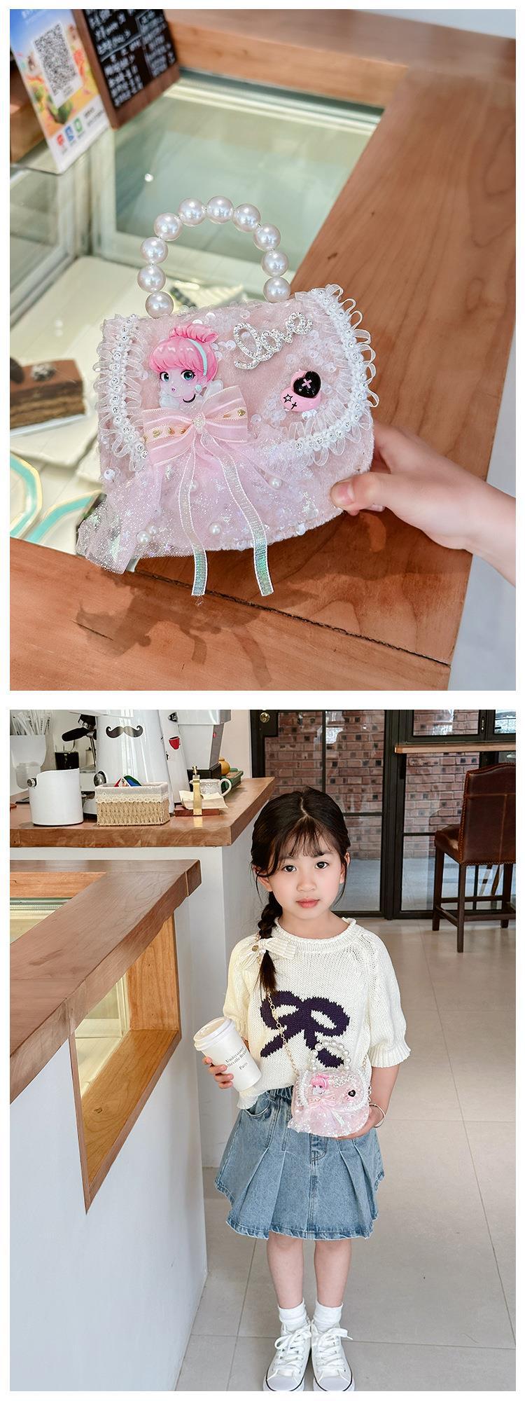 어린이 소녀 공주 어깨 크로스 바디 가방 활 장식 조각 귀여운 미니 패션 스타일 비즈 핸드백 가방