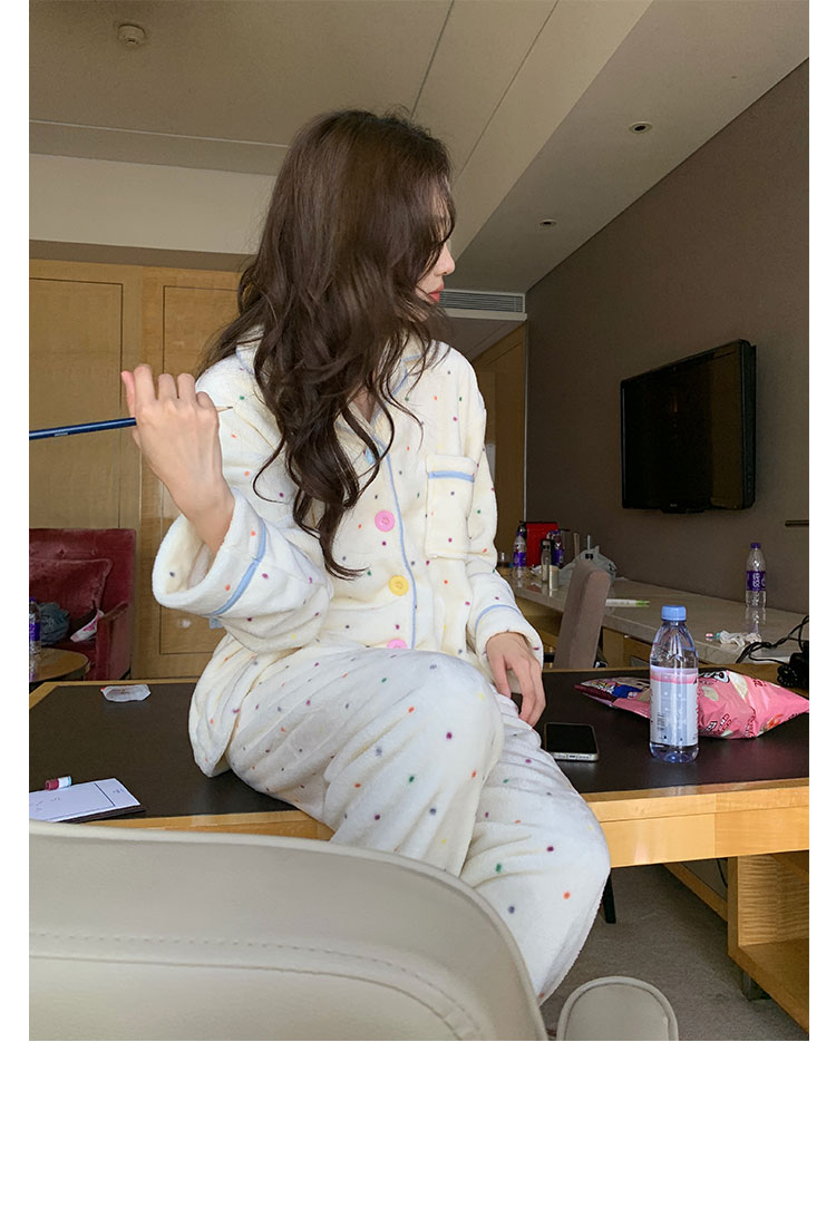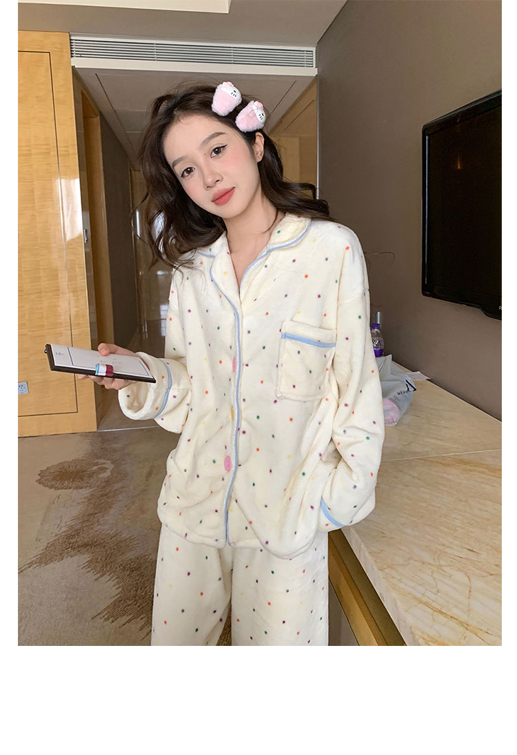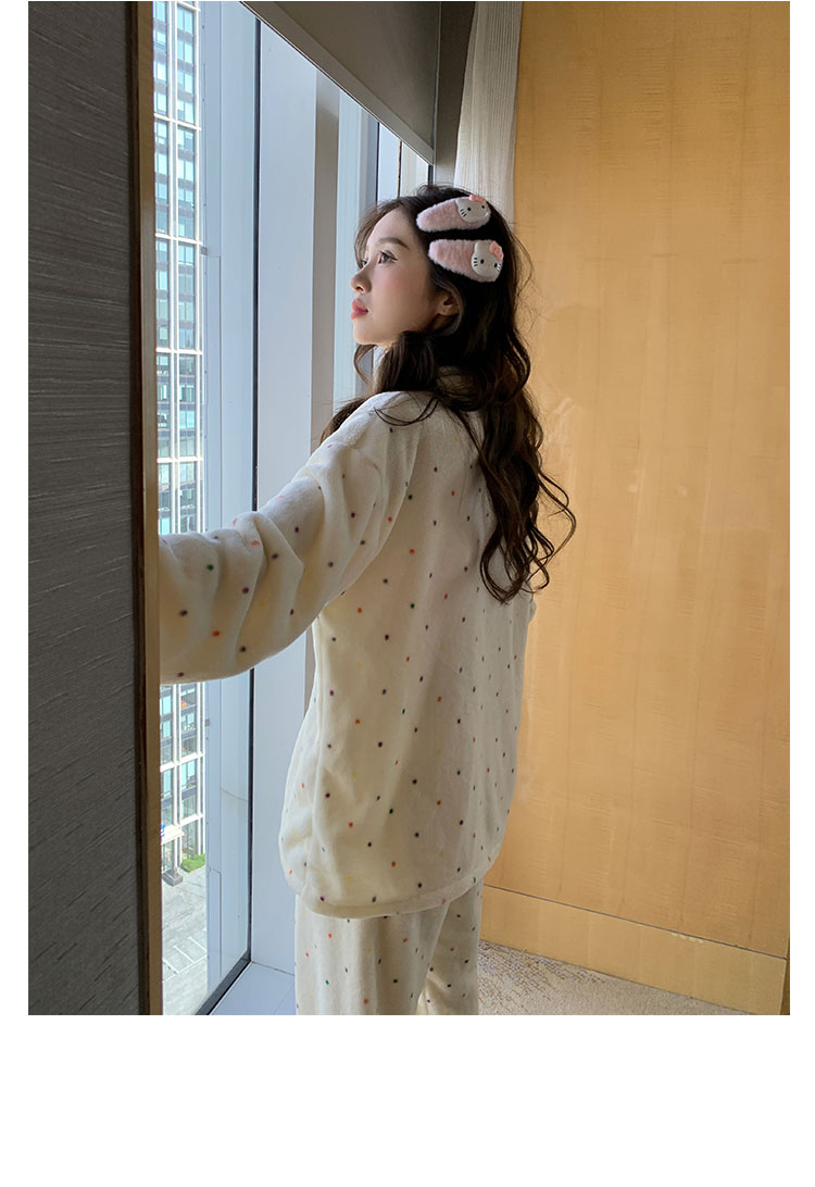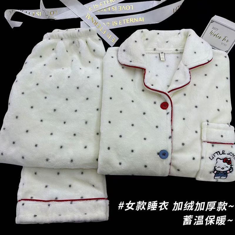 Xin Bang Homedress Coral Fleece 부드러운 피부 친화적 인 홈 의류 기모 두꺼운 따뜻한 잠옷 세트 여성의 겨울스토어 가기