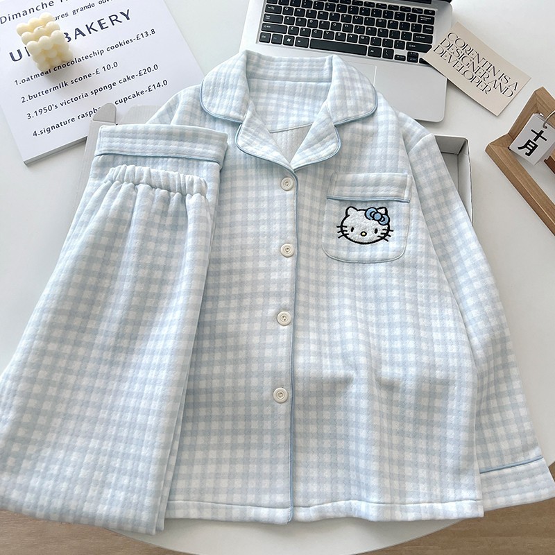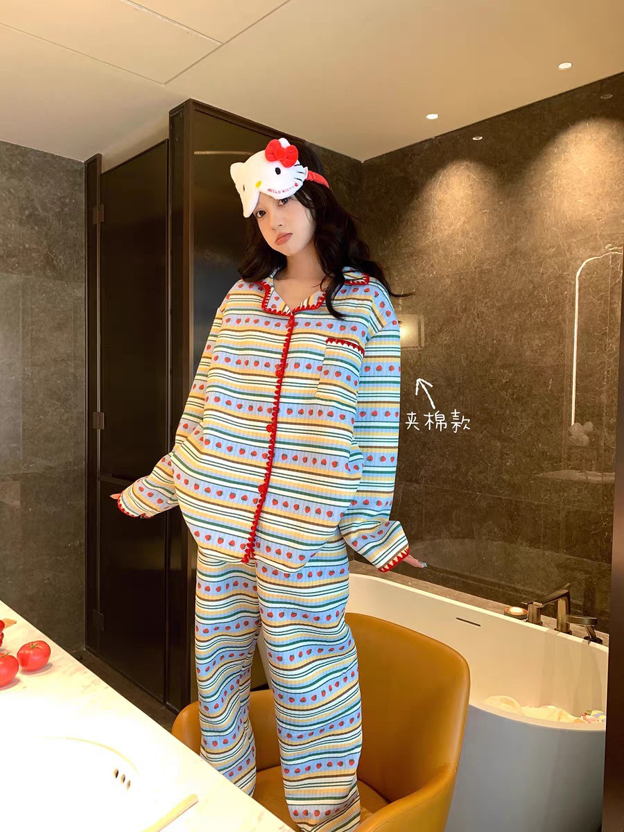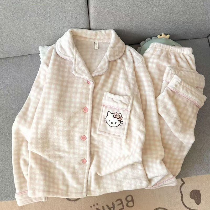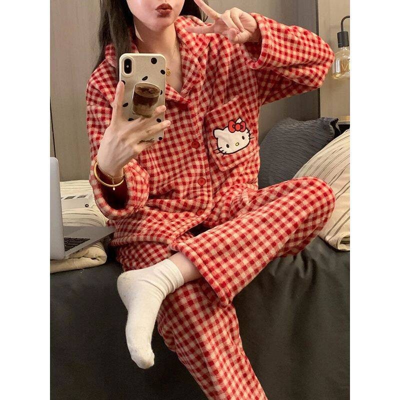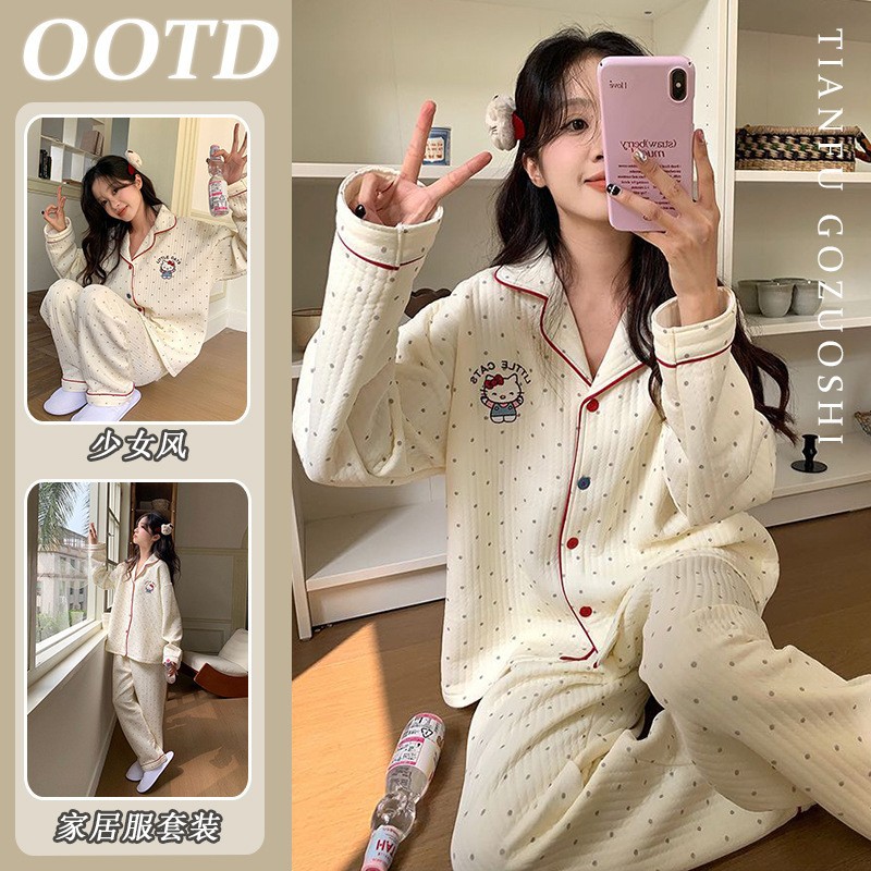 Xin Bang Homedress Coral Fleece 부드러운 피부 친화적 인 홈 의류 기모 두꺼운 따뜻한 잠옷 세트 여성의 겨울스토어 가기