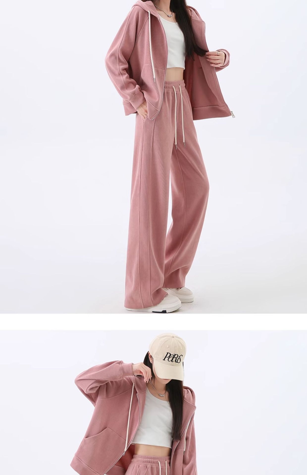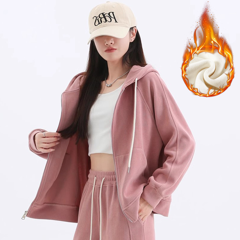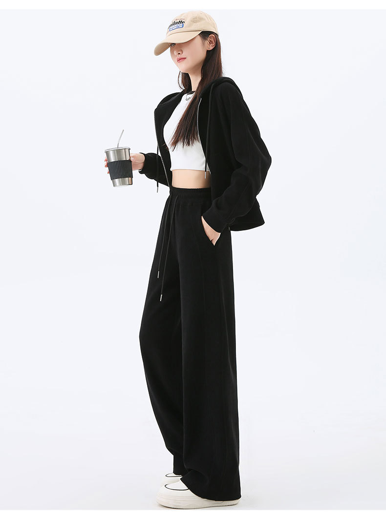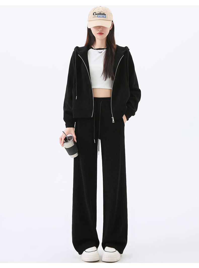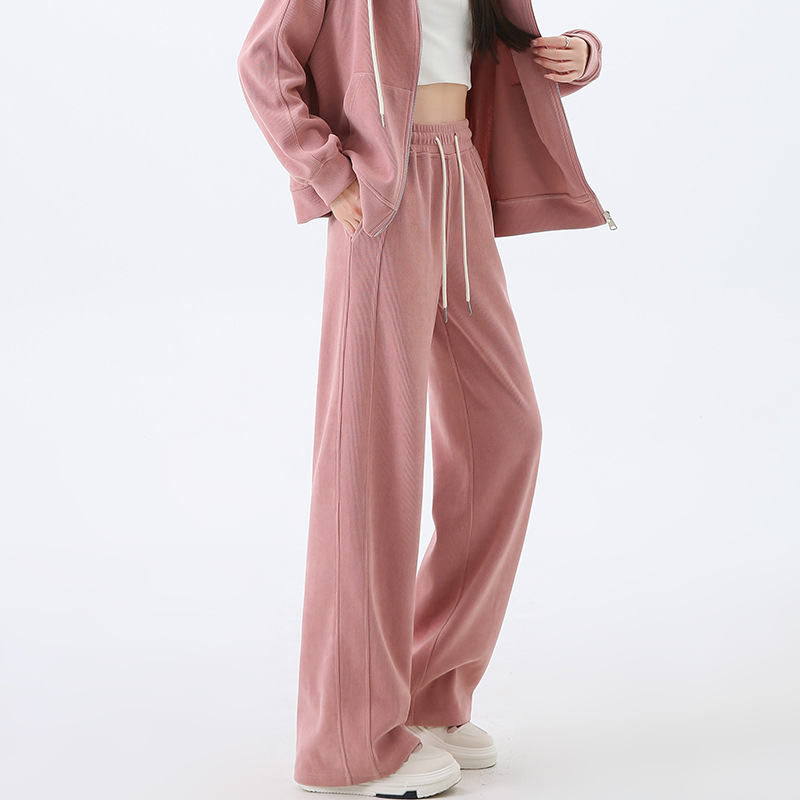 여성용 스포츠 슈트 가을 겨울 후드 스웨트셔츠 가디건 슬리밍 효과 2026년 신상 캐주얼 셔닐 와이드 팬츠스토어 가기