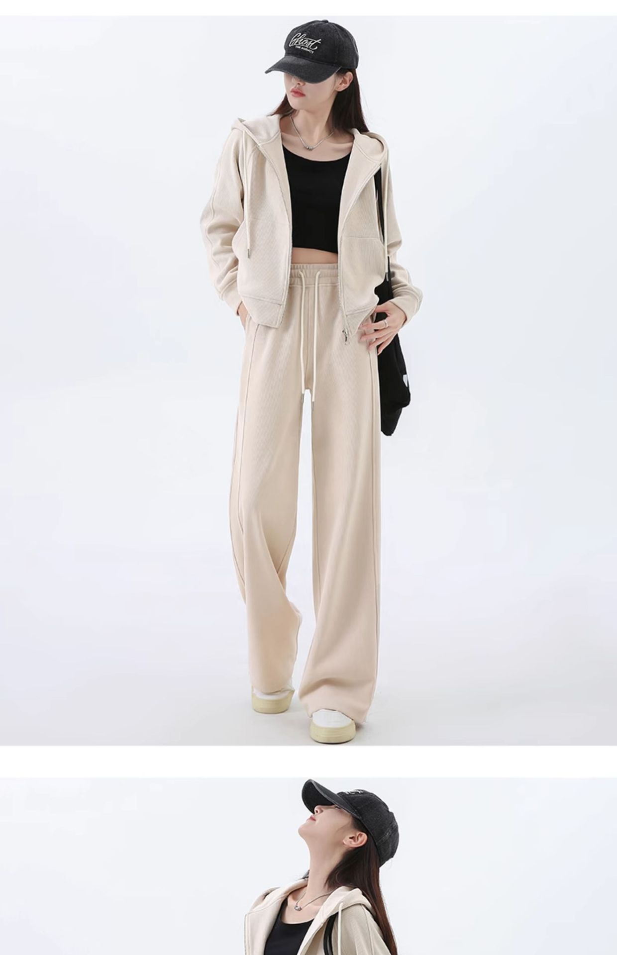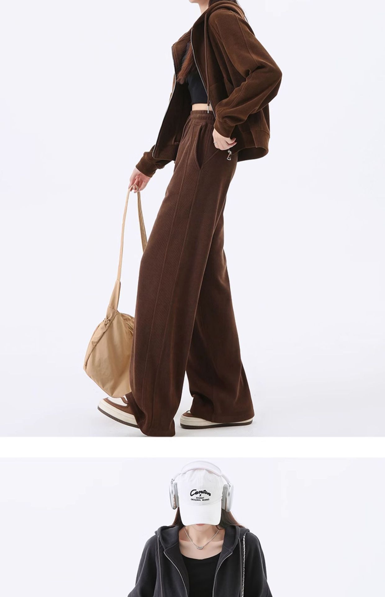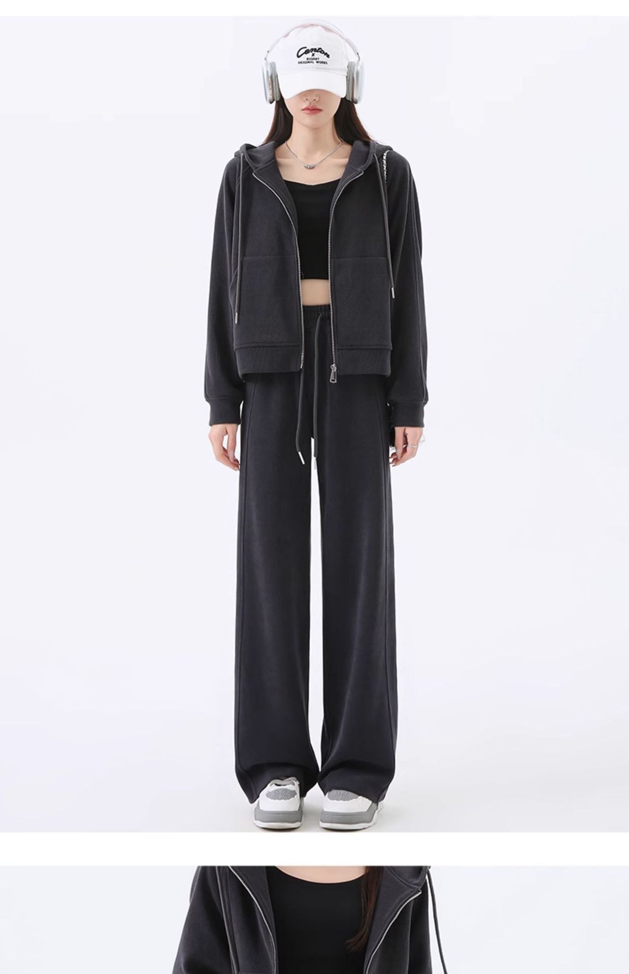 여성용 스포츠 슈트 가을 겨울 후드 스웨트셔츠 가디건 슬리밍 효과 2026년 신상 캐주얼 셔닐 와이드 팬츠스토어 가기