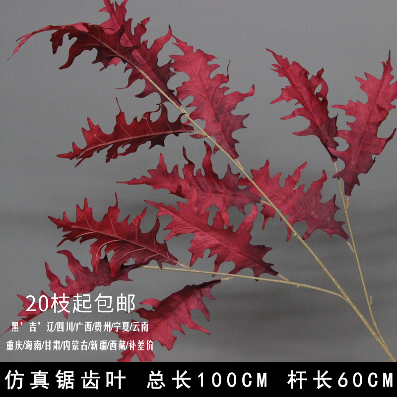 仿真锯齿叶珊瑚枝 婚庆花材假花婚礼堂吊顶软装花艺花排插花配叶