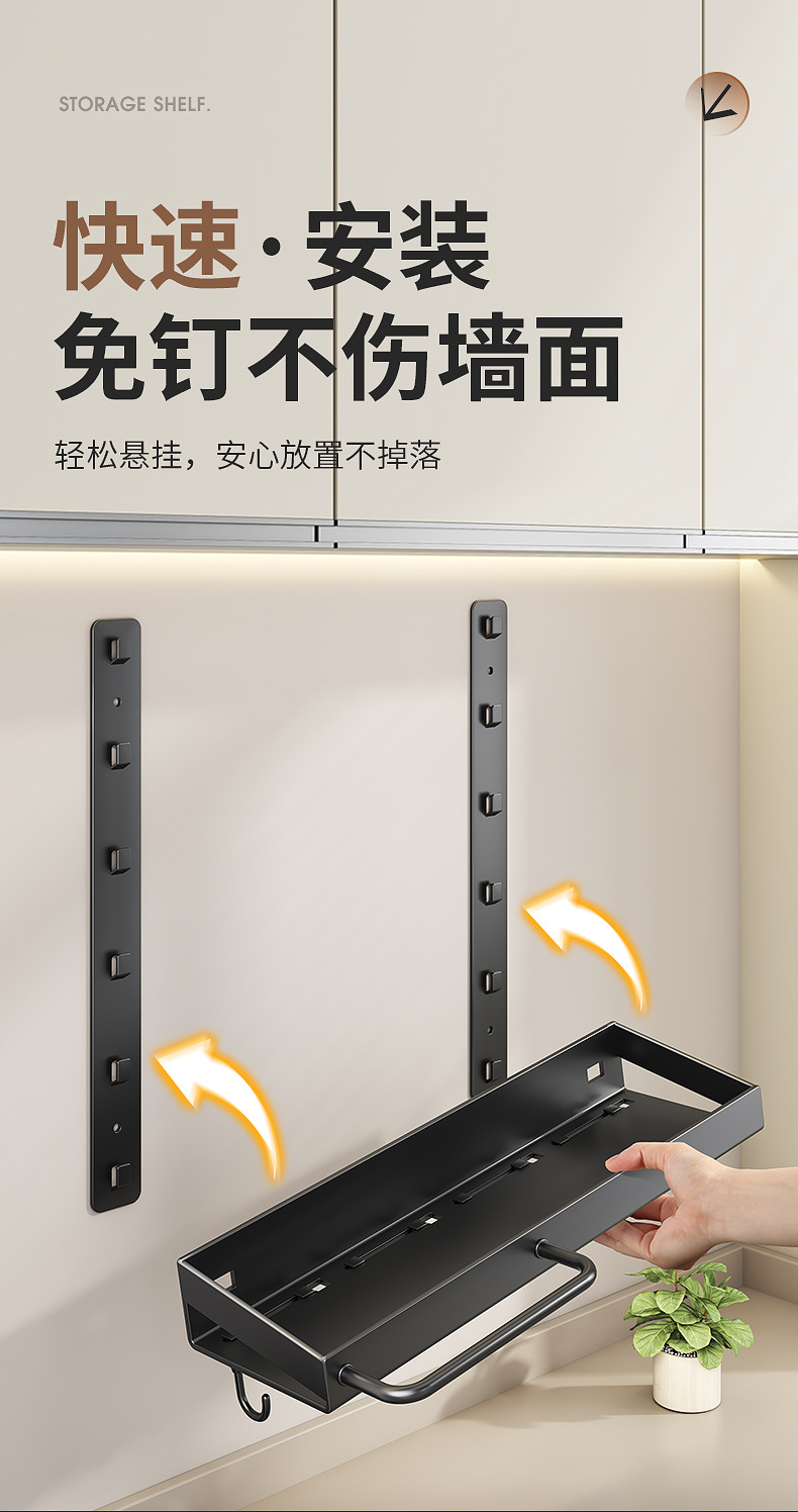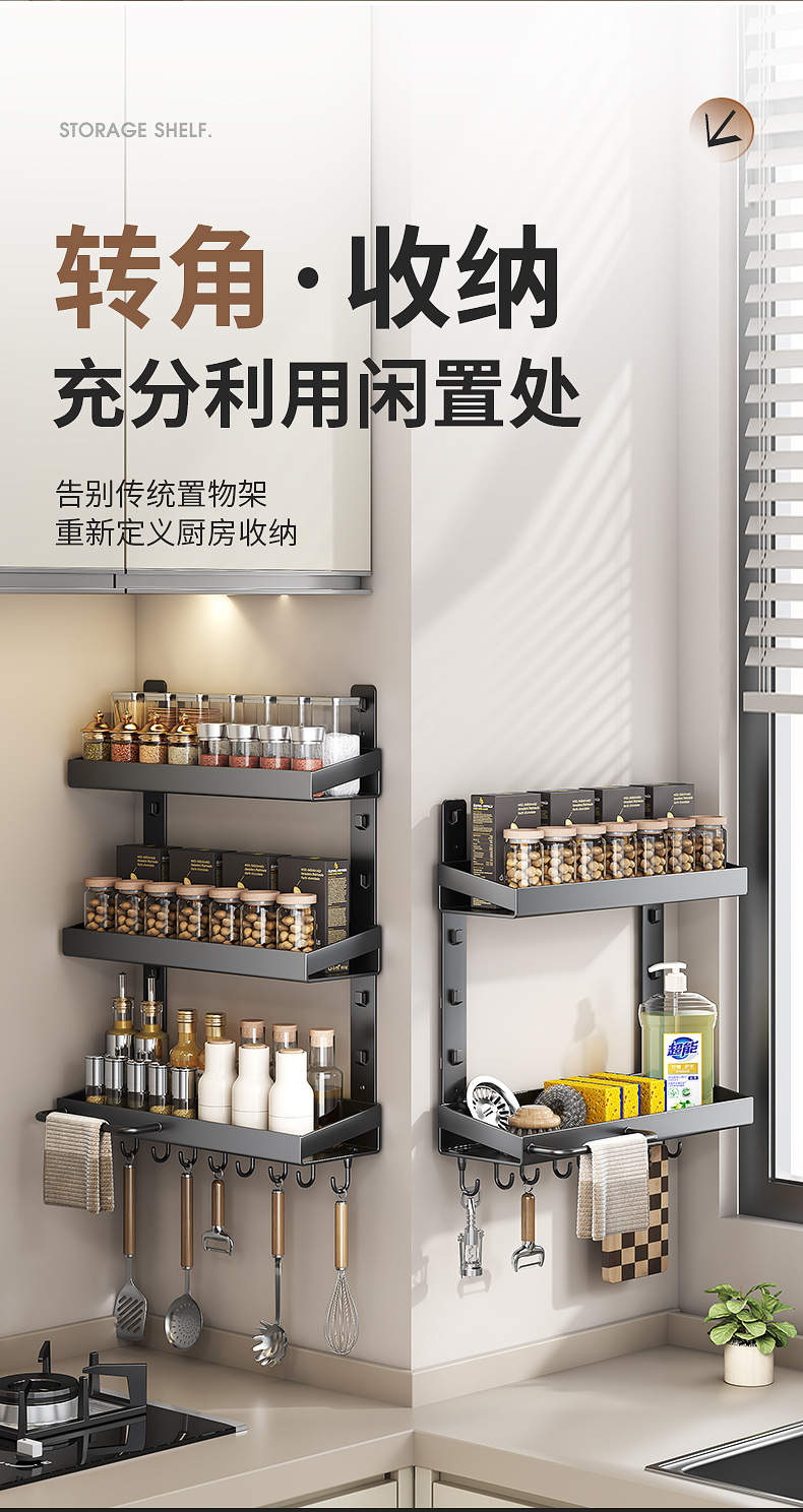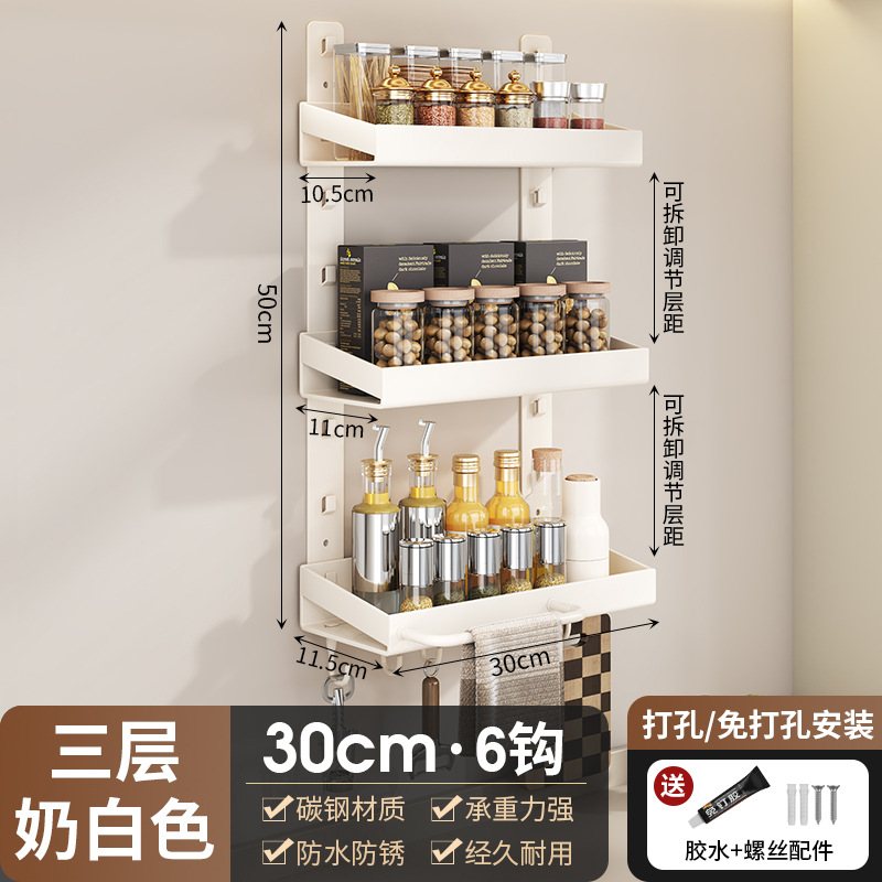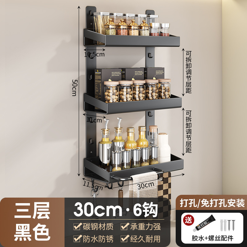 펀치없는 주방 벽 교수형 랙 다층 다기능 벽 조미료 랙 가정용 용품 보관 랙스토어 가기
