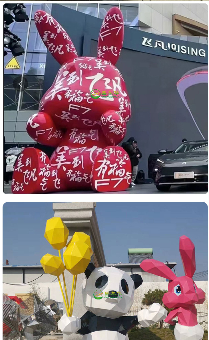 유리 강철 만화 조각 작은 코끼리 쇼핑몰 야외 큰 캐릭터 마스코트 그물 빨간 인형 IP 이미지