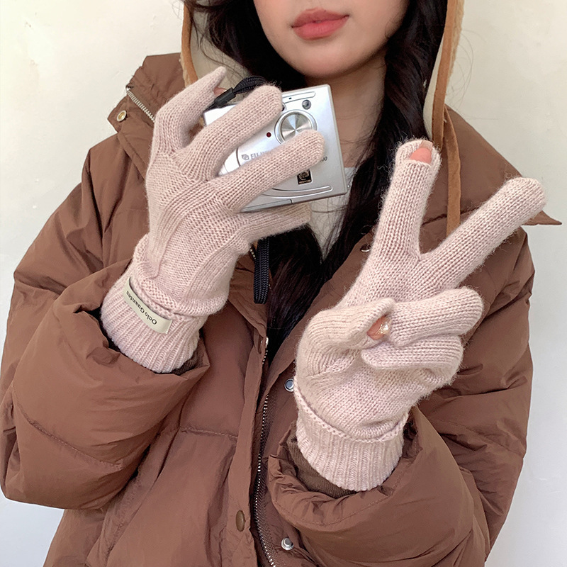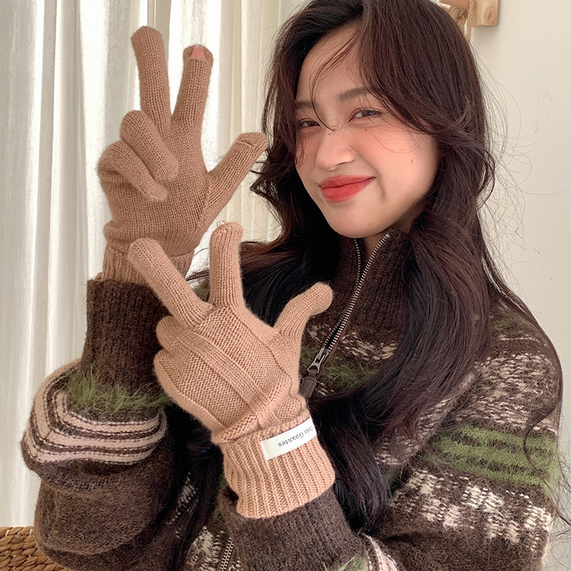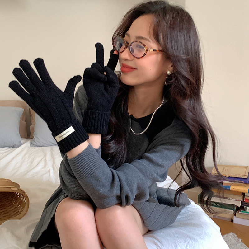 가을과 겨울 따뜻한 Ins 부드러운 왁스 솔리드 컬러 레이스 울 장갑 여성의 겨울 따뜻한 니트 5 손가락 터치 스크린 장갑스토어 가기