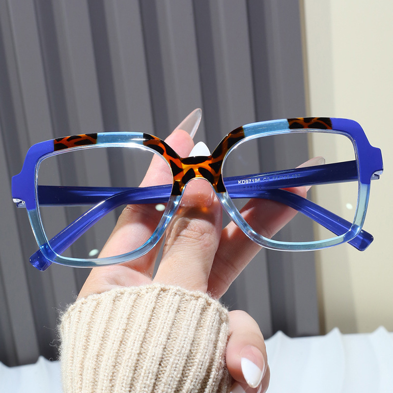 스티칭 스퀘어 안경 프레임 안티 블루 라이트 2024 새로운 스타일 안경 프레임 독특한 콘트라스트 컬러 패션 플랫 안경 인터넷 유명 인사스토어 가기