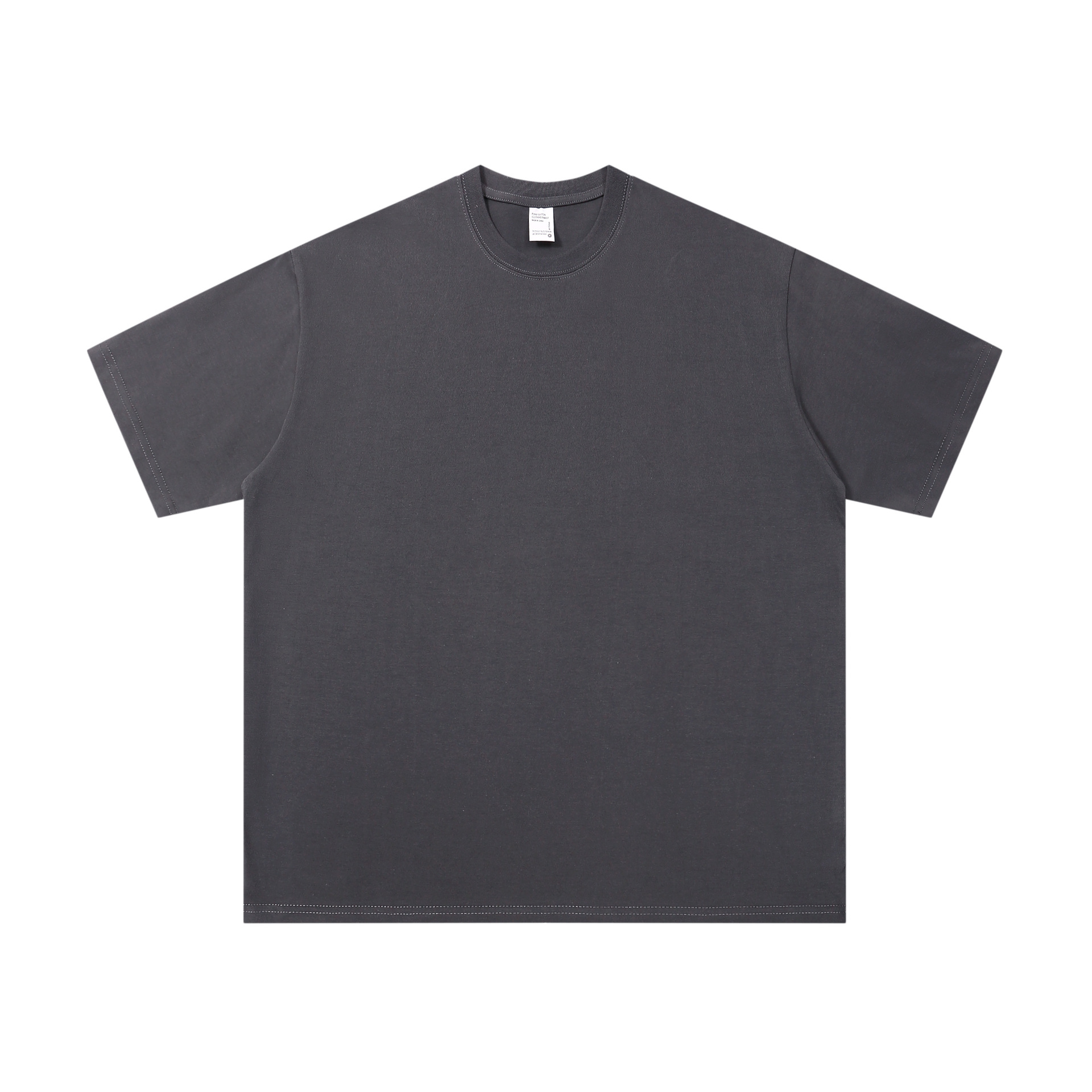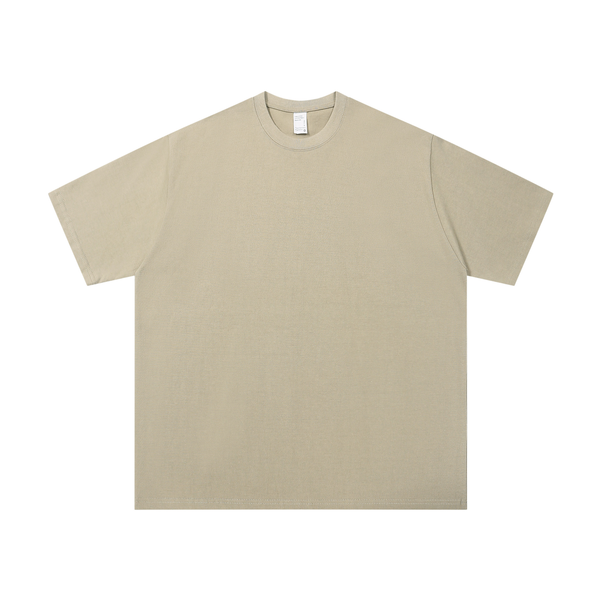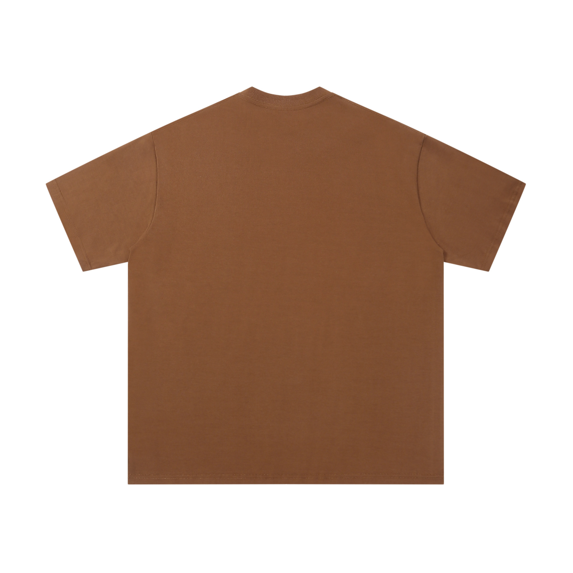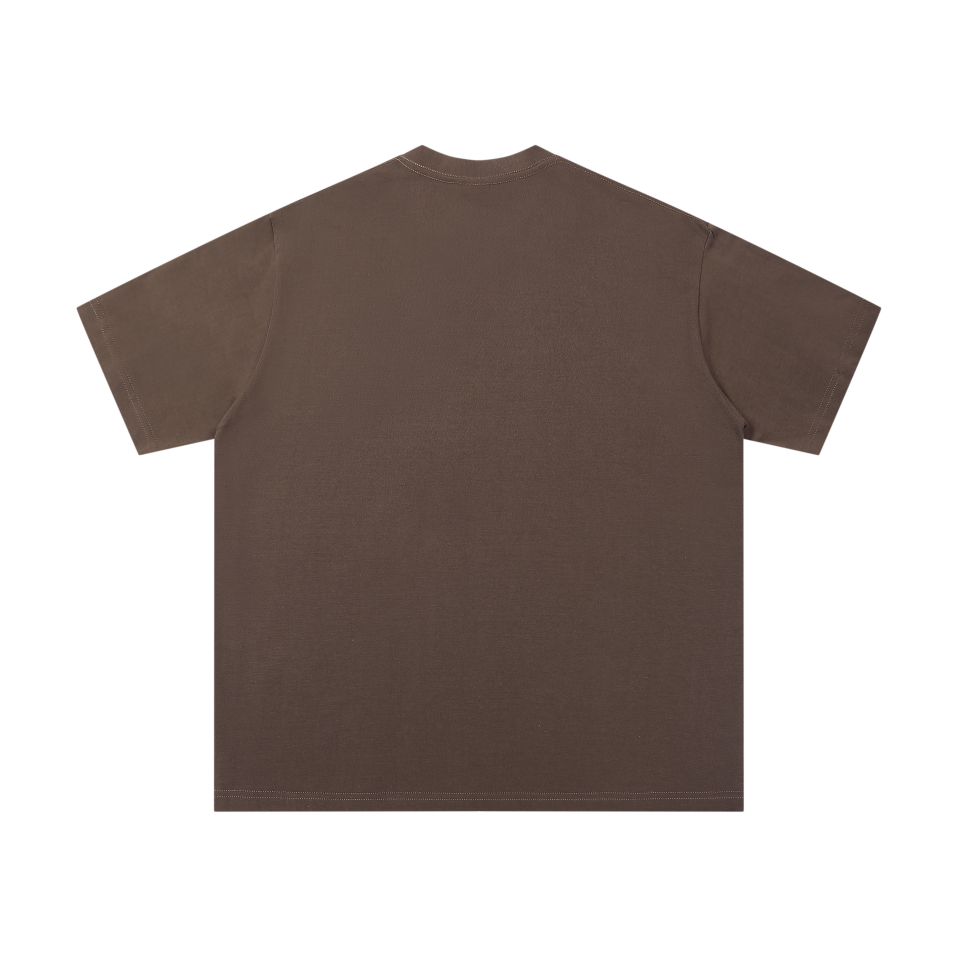 405g 무거운 다크 브라운 퓨어 코튼 티셔츠 두꺼운 불투명 한 반팔 남성과 여성의 미국 스타일 작은 칼라 느슨한 플러스 사이즈 탑스토어 가기