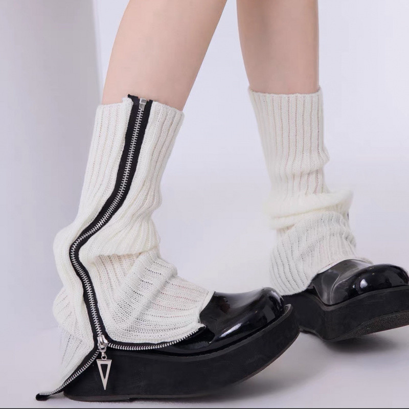 가을과 겨울 독특한 따뜻한 지퍼 니트 양말 Y2K 스택 양말 따뜻한 밀레니엄 핫 걸 송아지 커버스토어 가기