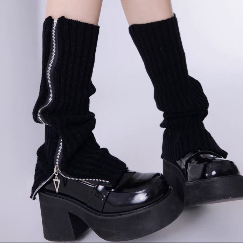 AY To films 个性保暖拉链针织袜套y2k堆堆袜保暖千禧辣妹小腿套
